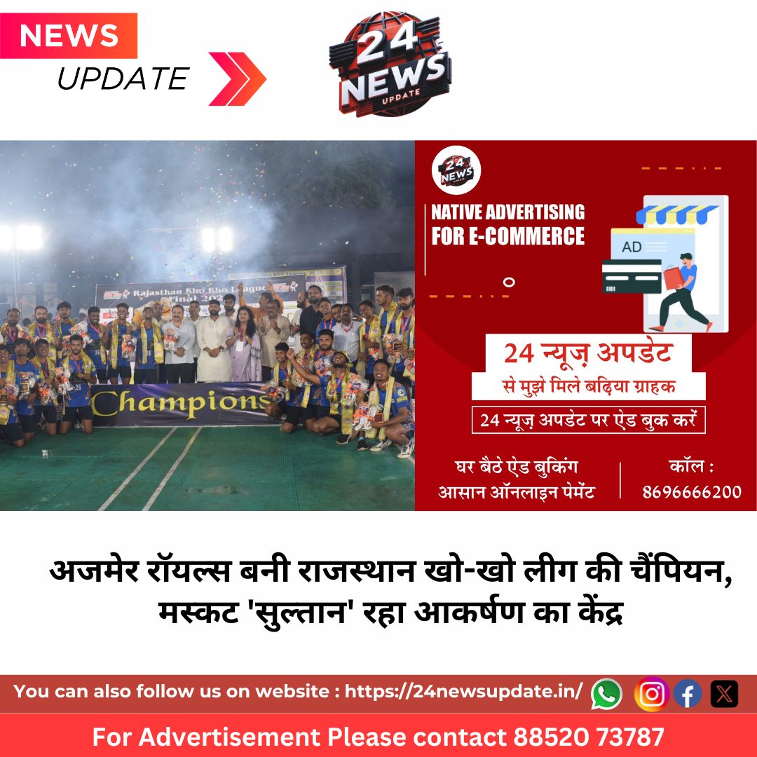 अजमेर। राजस्थान खो-खो संघ व दयानंद महाविद्यालय अजमेर के संयुक्त तत्वावधान में आयोजित राजस्थान खो-खो लीग का खिताब इस बार अजमेर रॉयल्स टीम ने जीतकर अपने नाम किया। लीग का समापन समारोह रंगारंग कार्यक्रमों के साथ संपन्न हुआ, जिसमें राजस्थान लोक सेवा आयोग के सदस्य कर्नल केसरी सिंह मुख्य अतिथि के रूप में उपस्थित रहे। अध्यक्षता दयानंद महाविद्यालय अजमेर के प्राचार्य डॉ. लक्ष्मीकांत शर्मा ने की।