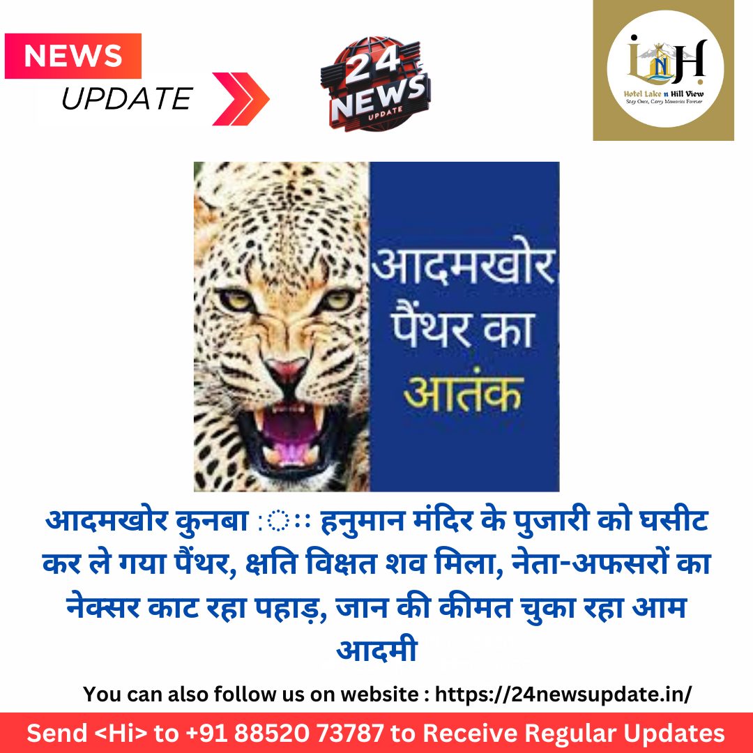 24 न्यूज अपडेट. उदयपुर। पैंथर का कुनबा आदमखोर हो गया है। एक के बाद एक पैंथर पकड़े जा रहे हैं लेकिन इंसानी शिकार का सिलसिला थम ही नहीं रहा। पहाड़ों के कटने और पेंथर के इलाके में घुसपैठ राजनेताओं और प्रशासनिक अधिकारियों की मिलीभगत से हुआ लेकिन इसकी कीमत जंगल में रहने वाला आम आदमी चुका रहा है। उसके पास इतनी सहूलियत नहीं है कि हर काम के लिए समूह में निकलें, सुरक्षा उपकरण रखें, वन विभाग की कही किताबी बातों के दायरे में रहकर अपनी दिनचर्या को बांध ले। आज एक दुखद घटना सामने आई जब उदयपुर के बड़गांव में मदार पंचायत के राठौड़ों का गुड़ा गांव में पेंथर ने हनुमान मंदिर के पुजारी का शिकार कर लिया। यही नहीं पेंथर पुजारी को मंदिर से घसीटकर सड़क के रास्ते 150 मीटर दूर मक्का के खेत में ले गया। पूरे रास्ते में खून के निशान मिले। आदमखोर कुनबे का पेंथर उसके बाद गर्दन, एक हाथ और छाती का कुछ हिस्सा खा गया। अब लोग संख्या गिन रहे हैं, यह पेंथर के हमले से हाल ही में हुई सातवीं मौत है। इससे पहले पूरे मेवाड़ में ऐसा कभी नहीं हुआ। अविवाहित बाल ब्रह्मचारी पुजारी का शव आज क्षत-विक्षत हालत में खेत में बिजली के खंभे के पास दिखा तो लोग सहम गए। बताया गया कि 65 वर्षीय पुजारी विष्णु गिरी मंदिर में ही सेवा-पूजा करते थे। रात को वे मंदिर के बाहर सो रहे थे। इस वजह से पेंथर का आसान शिकार हो गए। सुबह जब लोग मंदिर पहुंचे तो पुजारी को आवाज दी। उनके नहीं दिखने पर आस पास तलाशी की। इस बीच लोगों को कुछ खून के निशान दिखे तो पक्का हो गया कि हो न हो कोइ्र अनहोनी हुई है। खून के निशानों के सहारे आसपास तलाश की तो नहीं मिले। उसके बाद पास के खेत में देखा तो वहां पर खंभे के पास शव पड़ा मिला। सूचना पर गोगुंदा थाना पुलिस और वन विभाग की टीम मौके पर आई। बताया गया कि मंदिर के पास पानी की एक टंकी पर जब सुबह लोग पानी भरने गए तब इस बात का पता चला।
