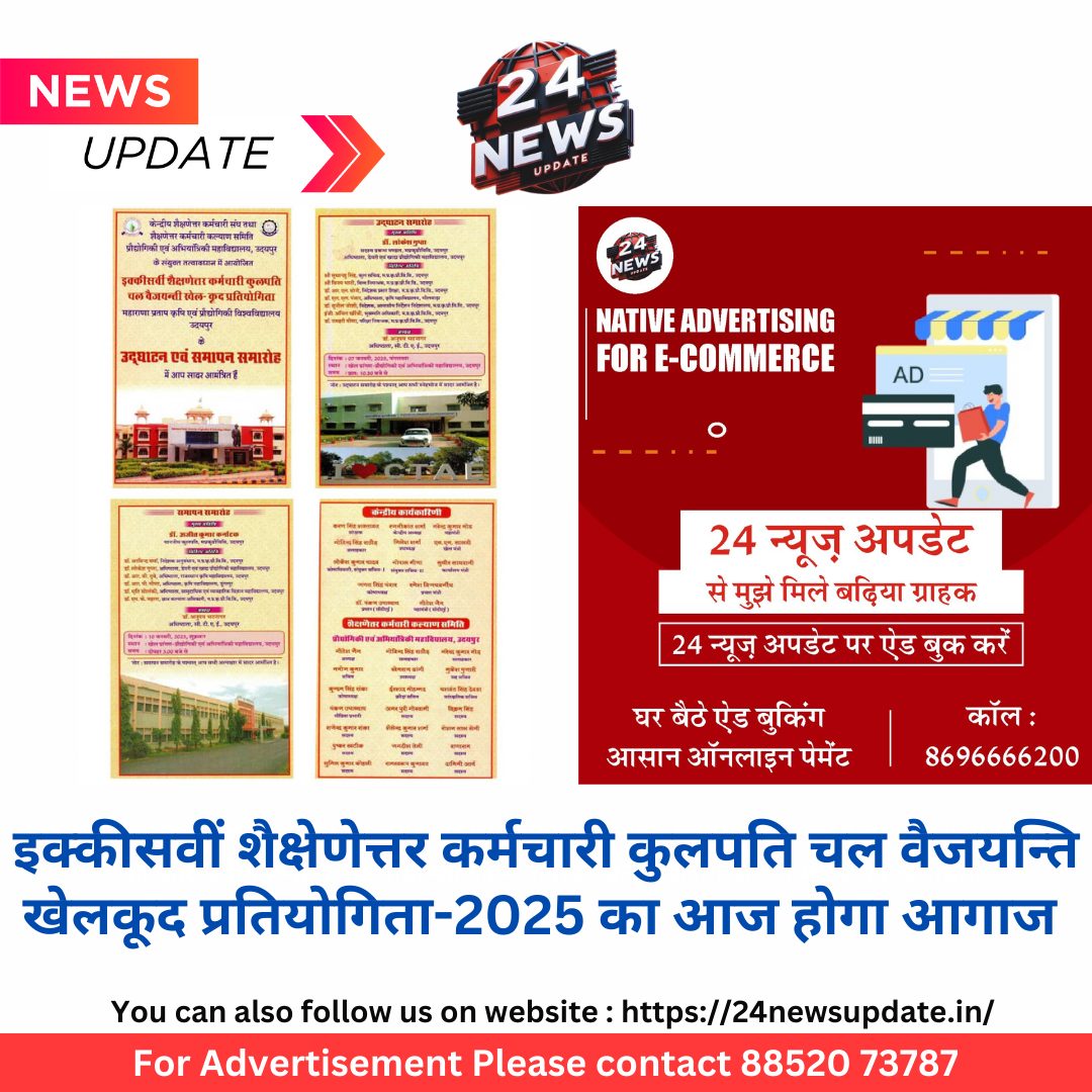 24 न्यूज़ अपडेट उदयपुर। महाराणा प्रताप कृषि एवं प्रौद्योगिकी विश्वविद्यालय द्वारा चार दिवसीय इक्कीसवीं शैक्षणेत्तर कर्मचारी कुलपति चल वैजयन्ती खेल-कूद प्रतियोगिता का आयोजन 7 से 10 जनवरी 2025 को सीटीएई के खेल प्रांगण में आयोजित किया जा रहा है। यह खेल प्रतियोगिता केन्द्रीय शैक्षेणेत्तर कर्मचारी संघ, महाराणा प्रताप कृषि एवं प्रौद्योगिकी विश्वविद्यालय, उदयपुर एवं शैक्षणेत्तर कर्मचारी कल्याण समिति, प्रौद्योगिकी एवं अभियांत्रिकी महाविद्यालय, उदयपुर के संयुक्त तत्वावधान में सीटीएई, उदयपुर के खेल प्रांगण में आयोजित की जा रही है। कार्यक्रम संयोजक एवं अध्यक्ष वेलफेयर, सीटीएई गीतेश जैन ने बताया कि इक्कीसवीं शैक्षेणेत्तर कर्मचारी कुलपति चल वैजयन्ति खेलकुद प्रतियोगिता का उद्घाटन दिनांक 7 जनवरी, 2025 को प्रातः 10.30 बजे माननीय प्रोफेसर लोकेश गुप्ता साहब, सदस्य प्रबन्ध मण्डल, महाराणा प्रताप कृषि एवं प्रौद्योगिकी विश्वविद्यालय, उदयपुर एवं अधिष्ठाता सी.डी.एफ.एस.टी. के कर कमलो द्वारा ध्वजारोहण के साथ किया जायेगा तथा सीटीएई उदयपुर के अधिष्ठाता डाॅ0 अनुपम भटनागर समारोह की अध्यक्षता करेगें। विशिष्ठ अतिथि के रूप में श्री सुधान्शु सिंह, कुलसचिव, श्री विनय भाटी़, वित्तनियंत्रक, प्रो. आर, एल. सोनी, निदेशक प्रसार शिक्षा, प्रो. एल. एल. पंवार, अधिष्ठाता, कृषि महाविद्यालय, भीलवाड़ा, प्रो. सुनील जोशी, आवासीय निर्देशन निदेशालय, इ. अनिल खींची, भूसम्पति अधिकारी, डाॅ. रामहरी मीणा, परीक्षा नियन्त्रक, म.प्र.कृ.प्रौ.वि.वि. उपस्थित रहेंगे। समस्त टीमों के प्रबन्धकों के नेतृत्व में सभी खिलाड़ियो द्वारा माननीय मुख्य अतिथि के सम्मुख मार्च-पास्ट किया जायेगा। केन्द्रीय शैक्षेणेत्तर कर्मचारी संघ के महामंत्री नरेन्द्र कुमार मोड़ ने बताया कि इन 08 टीमों भीलवाड़ा, बांसवाड़ा-प्रतापगढ़, भूसम्पति कार्यालय, डेयरी – सामुदायिक विश्वविद्यालय विज्ञान – सीसीपीसी, आर.सी.ए., सीटीएई प्रसार शिक्षा निदेशालय एवं प्रशासनिक कार्यालय के लगभग 300 शैक्षणेत्तर कर्मचारी इस खेलकूद प्रतियोगिता में भाग ले रहे है। इस प्रतियोगिता की खास बात यह है कि इसमें सभी आयु वर्ग के कर्मचारी भाग लेते है। इस चार दिवसीय खेलकूद प्रतियोगिता में आउटडोर (फुटबाॅल, बाॅस्केटबाॅल, वाॅलीबाॅल, कब्बड्डी, क्रिकेट, रस्सा-कसी एवं एथलेटिक्स) एवं इनडोर (बेडमिन्टन, टेबल टेनिस) खेल खेले जायेंगे।केन्द्रीय शैक्षेणेत्तर कर्मचारी संघ के खेलमंत्री एन.एल. सालवी ने बताया कि उद्धाटन समारोह उपरान्त प्रथम दिन बाॅलीबाॅल, बाॅस्केटबाल, फुटबाल एवं कबड्डी के मैच आयोजित किये जायेंगे।केन्द्रीय शैक्षेणेत्तर कर्मचारी संघ के अध्यक्ष रजनीकांत शर्मा ने बताया कि इस खेलकुद प्र