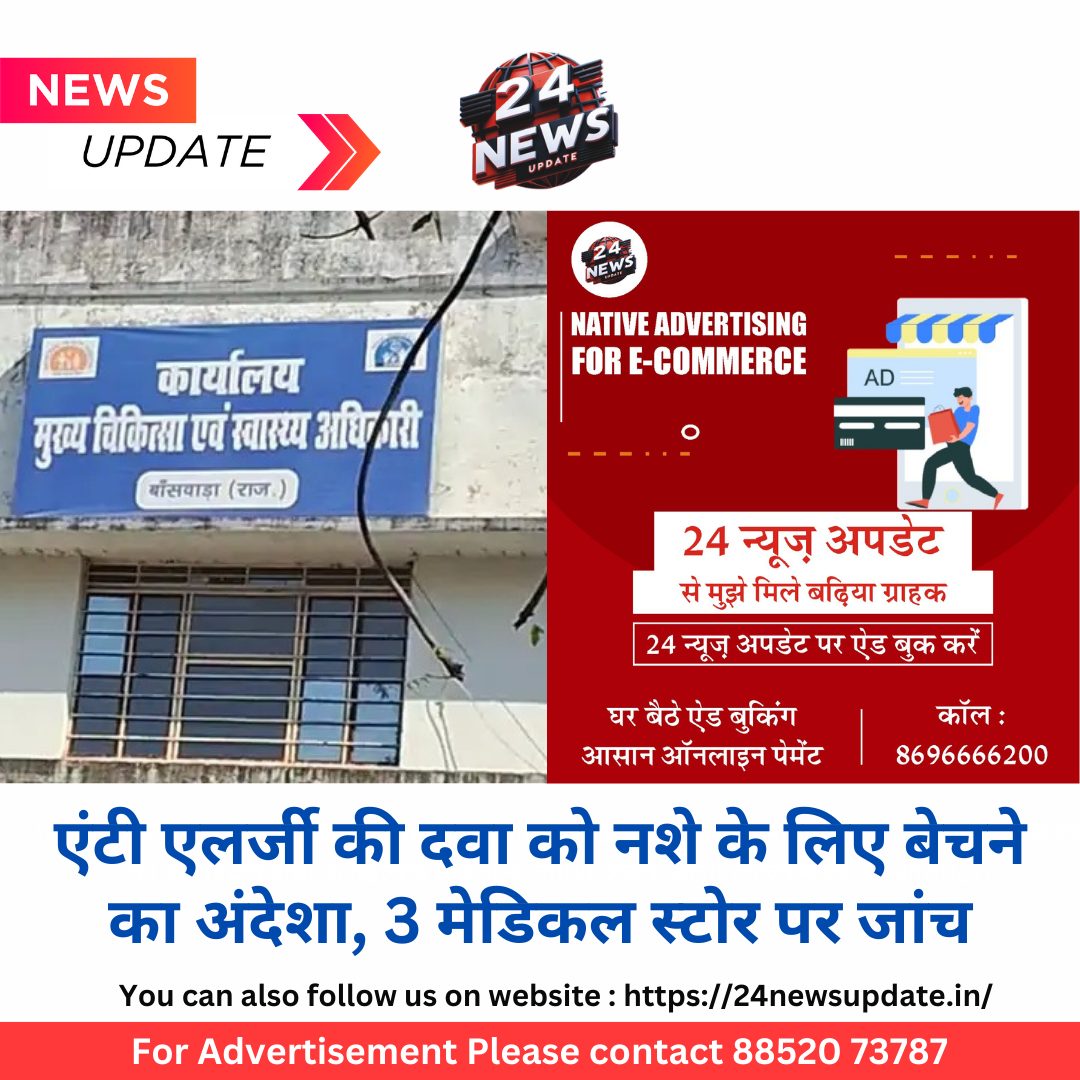 24 न्यूज अपडेट.बांसवाड़ा। यहां के कस्टम चौराहे से इंद्रा कॉलोनी के बीच तीन मेडिकल स्टोर्स पर औषधि नियंत्रण अधिकारी विशाल जैन ने संचालकों से एंटी एलर्जी दवा की बिक्री की जानकारी मांगी। तीनों मेडिकल स्टोर संचालक दस्तावेज प्रस्तुत नहीं कर सके। तीनों को नोटिस देकर जवाब मांगा गया है। औषधि नियंत्रण अधिकारी का कहना है कि निरीक्षण करके रिपोर्ट उच्चाधिकारियों को भेज है। बताया गया है कि सीएलजी समूह की बैठक में लोगों ने इन मेडिकल स्टोर्स पर दवा को नशे के रूप में बेचने की शिकायत की थी। बाद मे ंजांच में बताया गया कि राजतालाब क्षेत्र के आसपास के मेडिकल स्टोर्स पर दवा मिलती है जिस पर जांच की गई। मेडिकल स्टोर पर जांच के दौरान एक फॉर्मासिस्ट मौके पर नहीं मिला। बताया जा रहा है कि इस दवा की बिक्री डॉक्टरी पर्ची के बिना नहीं किया जा सकता। बिक्री का रिकॉर्ड रखना भी जरूरी होता है। बताया जा रहा है कि बांसवाड़ा में एंटी एलर्जी दवा को नशे के तौर पर कुछ लोग उपयोग कर रहे हैं। नशे की यह लत बढ़ती जा रही है। इस पर चिकित्सा विभाग की ओर से कार्रवाई की गई। टीम ने मेडिल स्टोर्स पर स्टॉक की जांच की है।