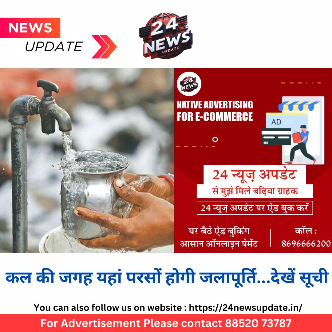 24 न्यूज अपडेट उदयपुर। नगर उपखंड सप्तम उदयपुर से मानसी वाकल पर पाइपलाइन लीकेज होने के कारण 7 जनवरी को होने वाली जलापूर्ति एक दिन आगे बढ़ाई जाती है। न्यू भोपालपुरा उच्च जलाशय,प्रेम नगर ,कालका माता,केशव नगर,प्रताप नगर उच्च जलाशय, यूआईटी,खेमपुरा ,बोहरा गणेश जी टंकी आदि इलाके प्रभावित होंगे। साथ ही दिन में होने वाली डायरेक्ट सप्लाई छोटी पीपली,बड़ी पीपली,सरस्वती हॉस्पिटल वाली गली,धर्मराज कॉलोनी ,प्रेम डेयरी,तथा शाम को डायरेक्ट सप्लाई आनंद नगर,रावत पूरा, जैन कॉलोनी, यूनिवर्सिटी रोड, कोठारियां का मोहल्ला,रामद्वारा चौक ,सबरी कॉलोनी,लोहार कॉलोनी, नाईयो की गली, आयड आदि क्षेत्र में जलापूर्ति पर असर होगा। सहायक अभियंता यामिनी उपाध्याय ने यह जानकारी दी।