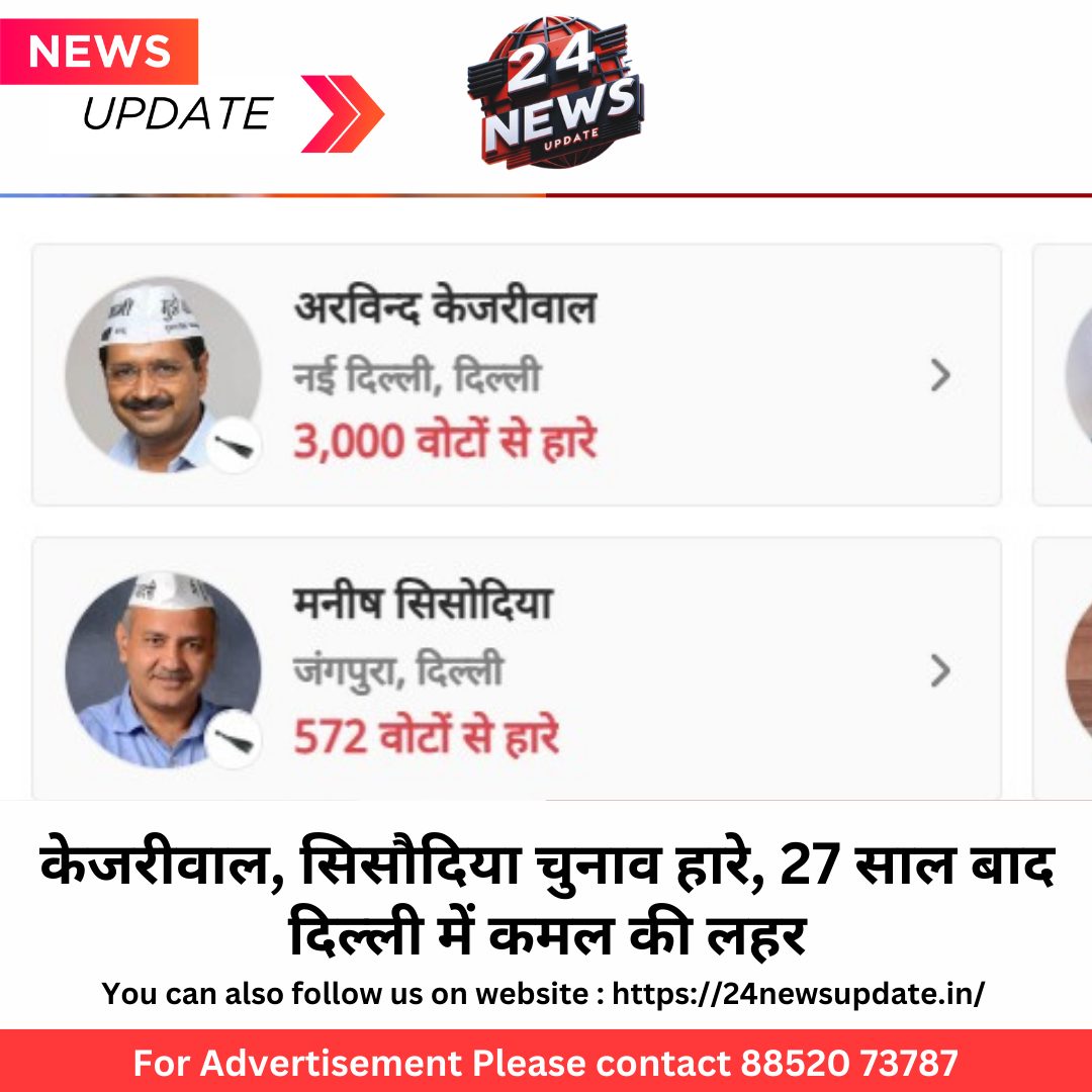 24 न्यूज अपडेट. नई दिल्ली। दिल्ली में 27 वर्षों के लंबे अंतराल के बाद भारतीय जनता पार्टी (भाजपा) की सरकार बनने जा रही है। चुनाव आयोग के रुझानों के मुताबिक भाजपा ने एक सीट जीत ली है और 46 सीटों पर बढ़त बनाए हुए है। आम आदमी पार्टी ने एक सीट जीती है और 22 सीटों पर आगे चल रही है। कांग्रेस का इस चुनाव में प्रदर्शन बेहद निराशाजनक रहा, उसे एक भी सीट नहीं मिल सकी। अरविंद केजरीवालः नई दिल्ली सीट से चुनाव हार गए। मनीष सिसोदियाः जंगपुरा सीट से पराजित हुए। आतिशीः कालकाजी सीट पर जीत दर्ज करने में सफल रहीं। अन्य नेताः सत्येंद्र जैन, सोमनाथ भारती, सौरभ भारद्वाज, अमानतुल्लाह खान और अवध ओझा जैसे प्रमुख नेता पीछे चल रहे हैं। केजरीवाल को हराने वाले भाजपा उम्मीदवार प्रवेश वर्मा ने गृह मंत्री अमित शाह से मुलाकात की। भाजपा मुख्यालय में जश्न का माहौल है। प्रधानमंत्री नरेंद्र मोदी शाम 7 बजे पार्टी मुख्यालय पहुंचकर कार्यकर्ताओं के बीच संबोधन देंगे।