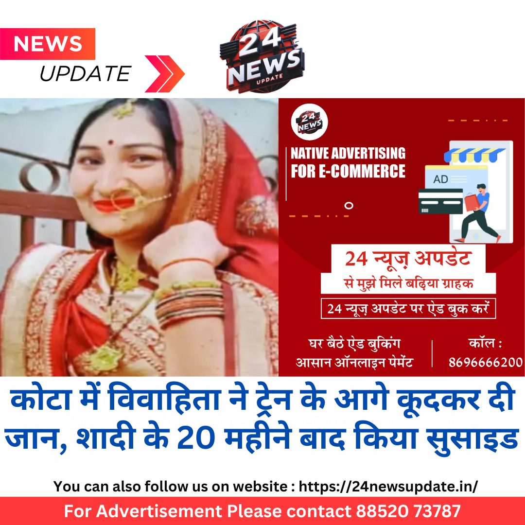 24 न्यूज़ अपडेट कोटा. कोटा जिले के सिमलिया थाना क्षेत्र में एक विवाहिता ने ट्रेन के आगे आकर सुसाइड कर लिया। विवाहिता ज्योति (28) कल्याणपुरा की रहने वाली थी। 20 महीने पहले ही उसकी शादी हुई थी। पीहर पक्ष ने पति के अफेयर से परेशान होना बताया है। शव का मेडिकल बोर्ड से पोस्टमॉर्टम करवाया जा रहा है। विवाहिता के मौत के मामले में परिजनों ने बातचीत करने से इनकार कर दिया। सिमलिया थाना एसआई सुरेश शर्मा ने बताया कि घटना देर रात की है। ज्योति के ससुर रात डेढ बजे करीब टॉयलेट करने उठे तो उन्हें गेट खुले नजर आए। देखा तो ज्योति कमरे में नहीं थी। उसे आसपास तलाशा। पुलिस को सूचना दी। कल्याणपुरा अंडर पास के पास रेलवे ट्रैक पर ज्योति का शव पड़ा था। बारां की तरफ से आ रही जोधपुर भोपाल ट्रेन की चपेट में आने से उसकी मौत हुई। ज्योति रात को कब निकली इस बारे में पता नहीं लगा। ज्योति के भाई नरेंद्र ने शिकायत दी है। जिसमें बताया कि ज्योति के पति विकास का गांव की ही किसी लड़की के अफेयर चल रहा है। इसी बात को लेकर 6 महीने झगड़ा हुआ था। समझाइश से मामला शांत हो गया था। ज्योति पति के अफेयर से तनाव में थी। ज्योति का पति संविदा पर नर्सिंगकर्मी लगा हुआ है। सुसाइड से एक दिन पहले ज्योति ने रीट एग्जाम का फाॅर्म भरा था। शव का मेडिकल बोर्ड से पोस्टमॉर्टम करवाया जा रहा है। जांच के बाद ही मौत के कारण सामने आएंगे।