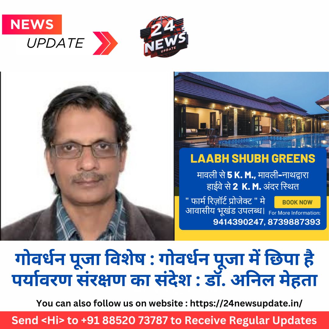 24 न्यूज़ अपडेट उदयपुर. द्वापर युग में भगवान श्रीकृष्ण द्वारा दिया गया संदेश कि सुख, समृद्धि और प्राकृतिक आपदाओं से बचाव के लिए बृजवासियों को गोवर्धन पर्वत की पूजा करनी चाहिए, पहाड़ों की महत्वता और संरक्षण की आवश्यकता को उजागर करता है। पहाड़ों, पेड़ों, पशुओं के पूजन,संरक्षण के माध्यम से भगवान श्रीकृष्ण ने जन जन को पर्यावरण और जैव विविधता संरक्षण से जोड़ लिया था।