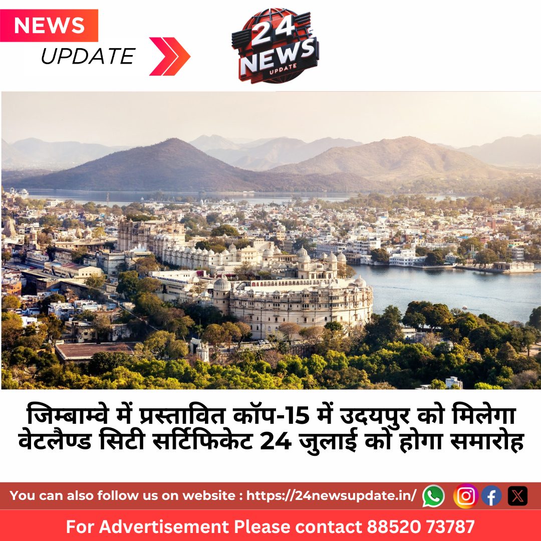 उल्लेखनीय है कि उदयपुर शहर को हाल ही वेटलैण्ड सिटी सूची में शामिल किए जाने की घोषणा की गई थी। रामसर कंर्वेषन ऑन वेटलैण्ड की ओर से जिम्बाम्वे स्थित एलिफेण्ट हिल्स रिसार्ट एण्ड कांफ्रेन्स सेंटर, विक्टोरिया फॉल में 23 से 31 जुलाई तक वेटलैण्ड को लेकर कॉप-15 कांफ्रेन्स का आयोजन किया जा रहा है। इसी कांफ्रेन्स के दरम्यान 24 जुलाई को वेटलैण्ड सिटी सर्टिफिकेट वितरण के लिए विषेष समारोह आयोजित किया जा रहा है। इसके लिए नगर निगम प्रषासक व कलक्टर नमित मेहता को आमंत्रित किया गया है।