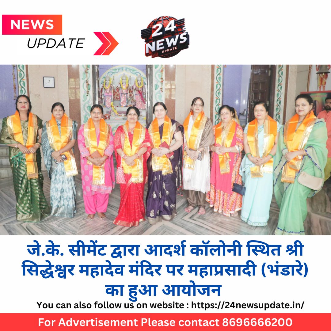 24 न्यूज़ अपडेट निंबाहेड़ा. जे.के. सीमेंट वर्क्स निंबाहेडा के गौरवशाली 50 वर्ष पूर्ण होने के अवसर पर आज शनिवार को आदर्श कॉलोनी स्थित सिद्धेश्वर महादेव मंदिर पर सभी धर्म प्रेमी भक्तों, मोहल्ले वालों के भोजन प्रसादी, (भंडारे) के कार्यक्रम का आयोजन किया गया है।
