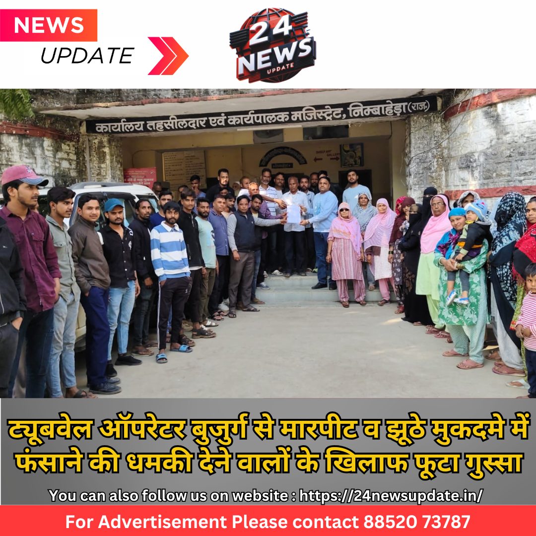 24 न्यूज अपडेट. निम्बाहेड़ा। नगर के वार्ड नंबर 36 में ट्यूबवेल ऑपरेटर बुजुर्ग व्यक्ति जमील खां मेव के साथ गाली गलौच कर मारपीट करने एवं पूर्व पार्षद मुफीद खान व वार्डवासियों को झूठे मुकदमे में फंसाने की धमकी देने वाले आरोपी शाहीन छिपा पिता अय्यूब छिपा व उसकी पत्नी मंजू भील के खिलाफ सख्त कानूनी कार्रवाई करने की मांग को लेकर वार्ड नंबर 36 के वार्डवासियों द्वारा सोमवार को एक ज्ञापन पूर्व पार्षद मुफीद खान के नेतृत्व में निंबाहेड़ा उपखंड अधिकारी विकास कुमार पंचोली को सौंपा। पूर्व पार्षद मुफीद खान एवं वार्डवासियों ने जानकारी देते हुए बताया कि वार्ड नंबर 36 में गत 10 वर्षों से पानी की सप्लाई चालू करने वाले ट्यूबवेल ऑपरेटर वामनगर निवासी जमील खां मेव गत दिनांक 24/12/2024 को शाम 6.30 बजे पानी की सप्लाई चालू कर रहे थे कि उन्होंने देखा कि वामनगर के ही रहने वाले शाहीन छिपा व उसकी पत्नी मंजू भील द्वारा ट्यूबवेल के पाइप में छेद कर दो अन्य अवैध कनेक्शन करवाए जा रहे थे जबकि उनके द्वारा पूर्व में भी ट्यूबवेल पाइप लाइन से दो कनेक्शन करवा रखे थे बावजूद इसके 2 अन्य अवैध कनेक्शन करवाए जाने पर ट्यूबवेल ऑपरेटर बुजुर्ग व्यक्ति जमील खां द्वारा अवैध कनेक्शन करवा रहे शाहीन छिपा व उसकी पत्नी मंजू भील को समझाइश दी गई कि वो अवैध कनेक्शन ना करवाए जिसपर शाहीन छिपा व उसकी पत्नी मंजू भील द्वारा ट्यूबवेल ऑपरेटर बुजुर्ग व्यक्ति जमील खां के साथ अपशब्दों का प्रयोग कर गाली गलौच करते हुए मारपीट की गई, वार्डवासियों ने बताया कि किसी तरह ट्यूबवेल ऑपरेटर बुजुर्ग जमील खां अपनी जान बचाकर भागते हुए अपने घर के अंदर जाने लगे लेकिन फिर भी उनके साथ मारपीट करने वाले शाहीन छिपा व उसकी पत्नी मंजू भील ने उन्हें उनके घर में से बाहर खींचते हुए उनके साथ बुरी तरह से मारपीट की व शाहीन छिपा द्वारा बुजुर्ग जमील खां के चेहरे पर मुक्के मारते हुए व ट्यूबवेल ऑपरेटर जमील खां से ट्यूबवेल वाल की चाबी छीनते हुए उस चाबी से भी आरोपी शाहीन छिपा व उसकी पत्नी मंजू भील ने मारपीट की। काफी मशक्कत के बाद वार्ड वासियों द्वारा ट्यूबवेल ऑपरेटर को बीच बचाव कर छुड़वाया गया। इसके बाद इसकी सूचना वार्डवासियों द्वारा पूर्व पार्षद मुफीद खान को दी गई। जिसपर पूर्व पार्षद मुफीद खान ने मौके पर पहुंच कर कुछ मोहल्ले वासियों की मदद से पीड़ित ट्यूबवेल ऑपरेटर को अस्पताल लेकर पहुंचे जहां पर उनका उपचार व मेडिकल कराया गया। वार्डवासियों ने बताया कि ट्यूबवेल ऑपरेटर बुजुर्ग व्यक्ति को पूर्व पार्षद एवं मोहल्लेवासियों द्वारा अस्पताल लेजाने पर शाहीन छिपा की पत्नी मंजू भील ने पूर्व पार्षद व मोहल्लेवासियों को धमकी देते हुए कहा कि में वकील हू और जो भी ट्यूबवेल ऑपरेटर को अस्पताल ले 