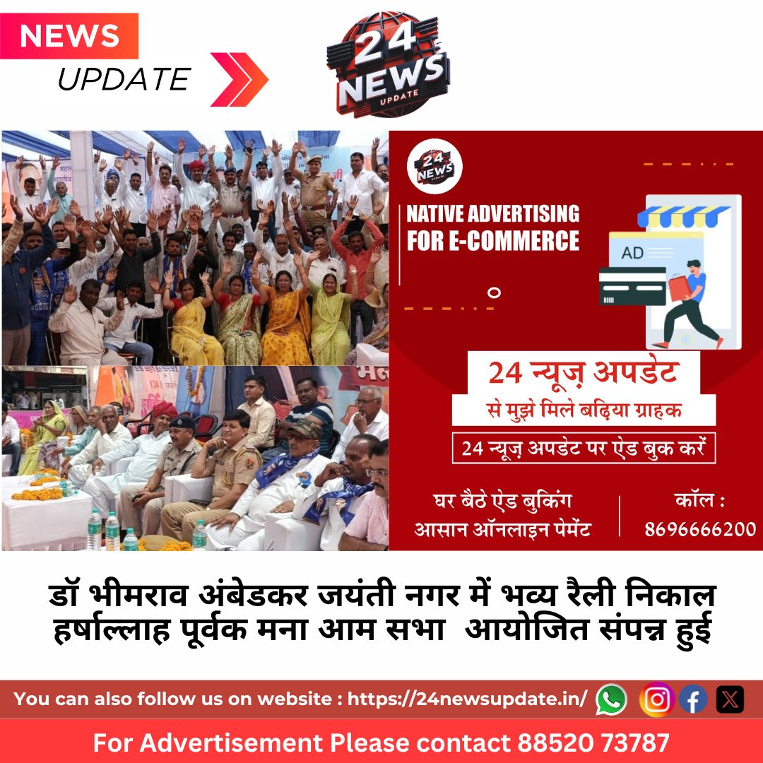 News Update निंबाहेड़ा । सोमवार को संविधान निर्माता भारत रत्न बाबा साहब डॉ भीमराव अंबेडकर की 134 वी जयंती अनुसूचित जाति जनजाति स्टेशन रोड निंबाहेड़ा कार्यालय से एवं नगर पालिका निंबाहेड़ा सफाई मजदूर कांग्रेस कार्यालय से घोड़ा गाड़ी बैंड बाजे के साथ महिलाओं पुरुषों युवक यूवतियो बालक बालिकाओं ने जय भीम के नारों के साथ बड़े ही हर्ष उल्लास पूर्वक भव्य रैली निकालकर नगर के मुख्य मार्ग से होते हुए अंबेडकर बस स्टैंड पर पहुंचकर डॉक्टर भीमराव अंबेडकर की आदमकद प्रतिमा पर माल्यार्पण कर पुष्पांजलि अर्पित का नमन कर आम सभा आयोजित क मनाई गई!