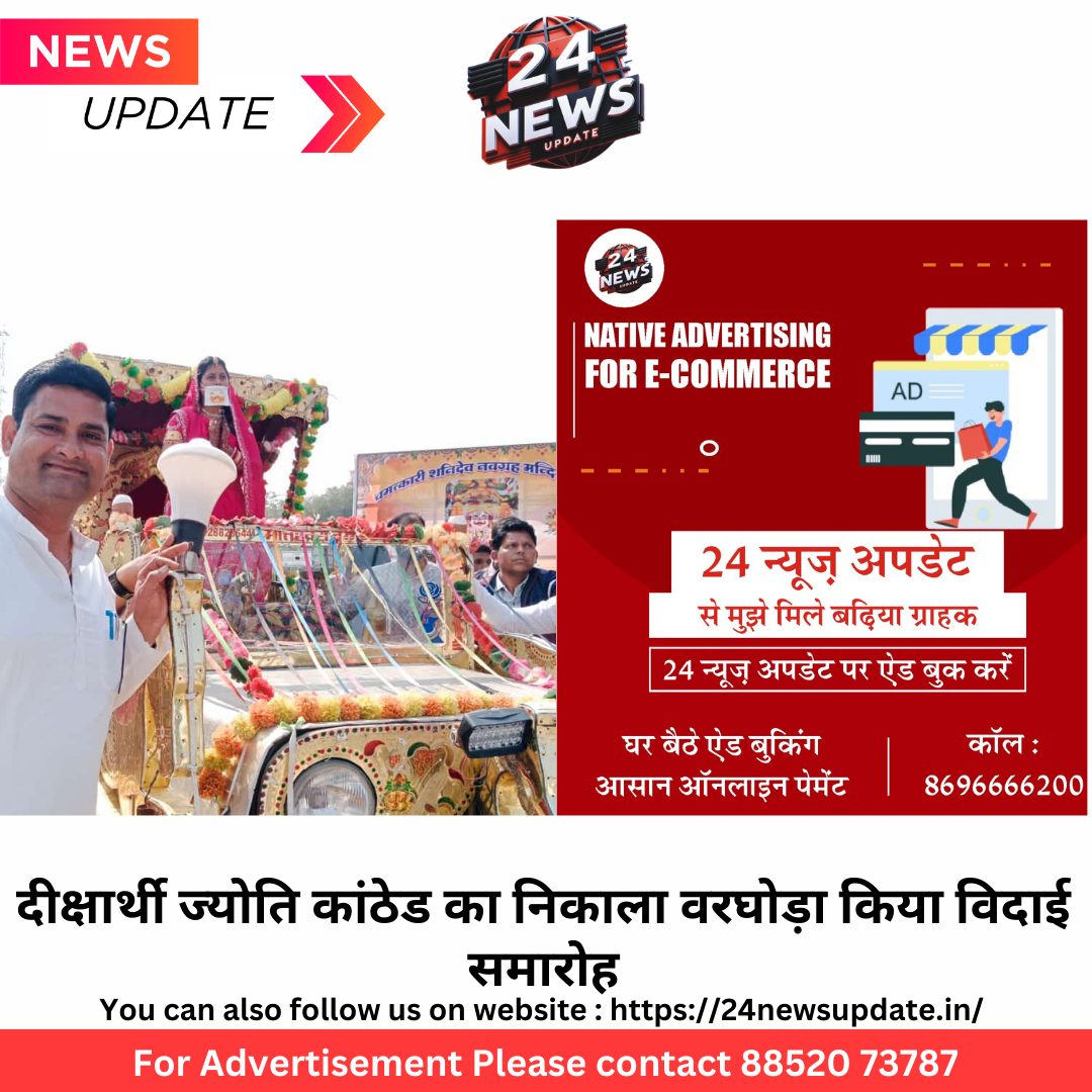 कार्यक्रम का संचालन सुशील नागौरी ने किया ममुमुक्षु ज्योति कांठेड को विदाई देने हेतु बाड़ी निंबाहेड़ा व आस पास के सैकड़ों ग्रामीण आशीर्वाद देने 4हेतु उमड़ पड़े कार्यक्रम में पूर्व विधायक अशोक नवलखा पंचायत समिति निंबाहेड़ा प्रधान बग़दीराम धाकड़ ,मंडल अदक्ष्य अशोक जाट आशीष टांक ने दीक्षार्थी की अनुमोदना की तथा कांठेड परिवार का बहुमान किया