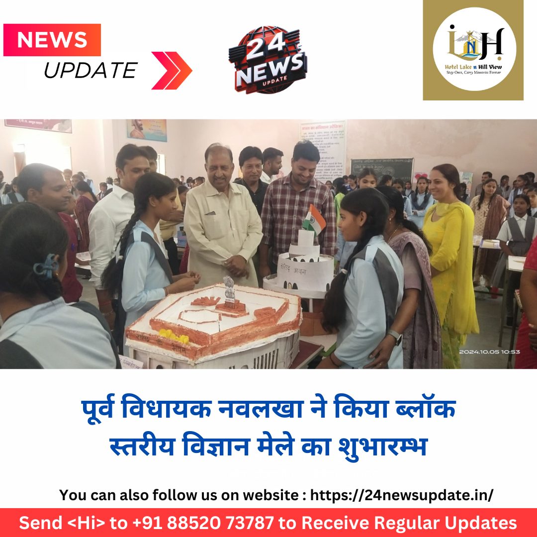 24 न्यूज़ अपडेट निम्बाहेड़ा। निम्बाहेड़ा के राजकीय बालिका उच्च माध्यमिक विद्यालय में शनिवार को पूर्व विधायक अशोक नवलखा के मुख्य आतिथ्य में ब्लॉक स्तरीय बालिका विज्ञान मेले का शुभारम्भ हुआ। कार्यक्रम की अध्यक्षता प्रधानाचार्य ललिता गाजरे ने की। विशिष्ट अतिथि के रूप में भाजपा नगर महामंत्री निलेश मेहता, पूर्व महामंत्री पारस वीरवाल, भाजयुमो नगर महामंत्री आशीष टांक, ब्लॉक शिक्षा अधिकारी नीतू गुप्ता आदि मंचासिन रहे।