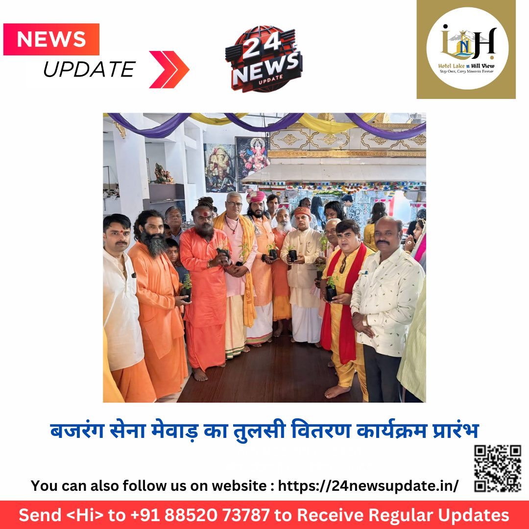 24 न्यूज़ अपडेट उदयपुर. बजरंग सेना मेवाड़ द्वारा हर वर्ष की तरह इस वर्ष भी नवरात्रि से पूर्व तुलसी वितरण का कार्यक्रम बोहरा गणेश जी मंदिर से प्रारंभ किया गया, बजरंग सेना मेवाड़ प्रमुख कमलेंद्र सिंह पंवार ने बताया कि इसका उद्देश्य विशेष कर नवरात्रि के दौरान गरबो में माता जी की प्रतिमा के साथ तुलसी का पौधा लगाकर उस स्थान को पवित्र करने हेतु यह अभियान किया जाता है , आज इसका प्रारंभ श्री बोहरा गणेश जी मंदिर से प्रारंभ किया गया, कार्यक्रम संरक्षक डॉक्टर प्रदीप कुमावत के सानिध्य में सर्व सनातन संत समाज के महंत इंद्रदेव दास, महंत अमर गिरी,काली कल्याणी धाम के महंत नारायण दास वैष्णव, महंत श्याम बाबा, महंत राधिका शरण शास्त्री, ब्रह्मचारी गुलाब दास, महंत योगेश आमेटा, महंत दयाराम रामसनेही, महंत सुशील चित्तौड़ा, संत चरण दास,प्रमोद वर्मा,बजरंग सेना मेवाड़ के करणवीर सिंह राठौड़, महेंद्र सिंह चौहान सहित इकाई मंडल के किशन सिंह लोदा ,राजमल चौधरी ,मुकेश सिंह रावत, रंजीत खोखर, मनीष तेजावत, आदि उपस्थित थे