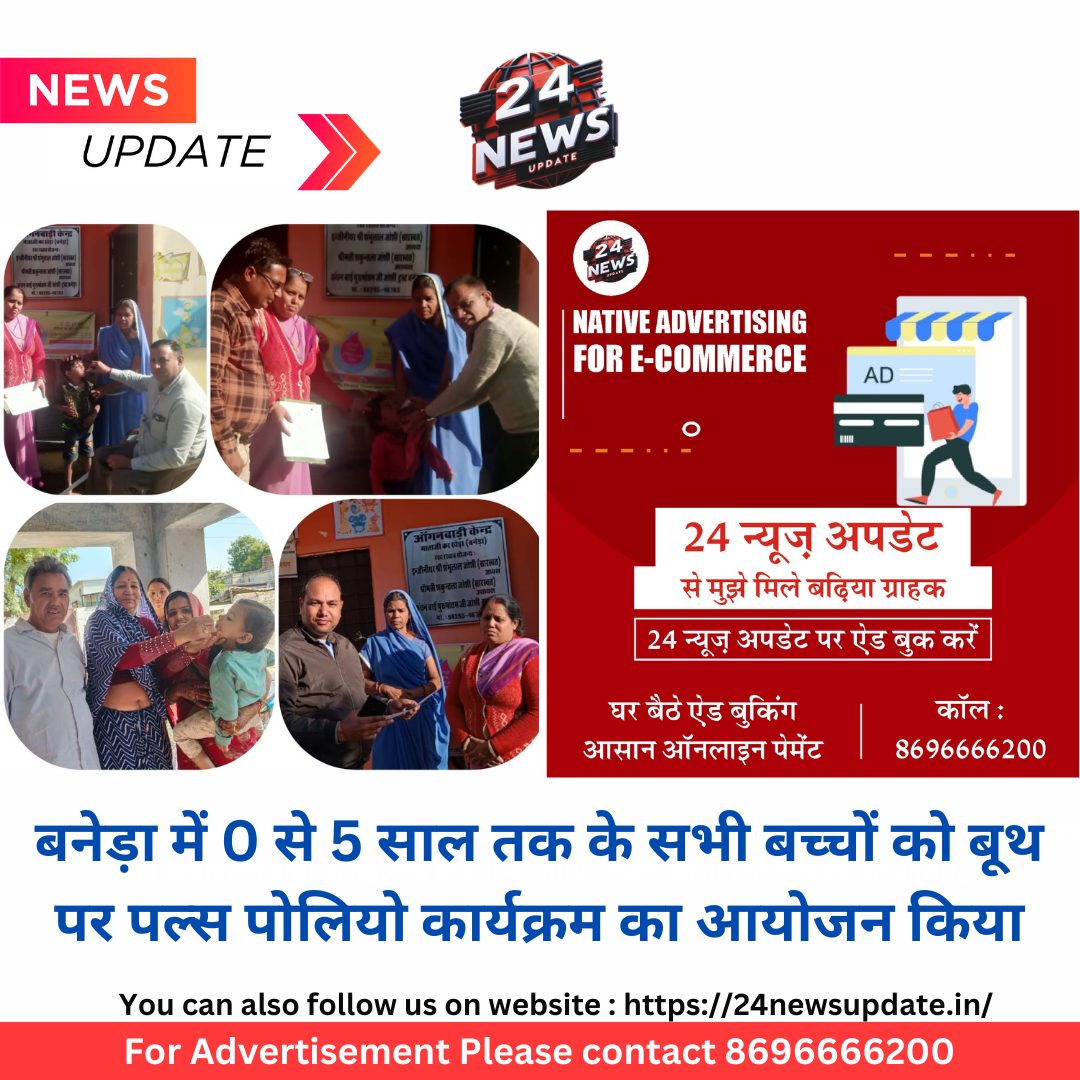 24 न्यूज अपडेट शाहपुरा. दिनांक 8 दिसंबर 2024 को पल्स पोलियो कार्यक्रम का आयोजन किया गया जिसमें चिकित्सा एवं स्वास्थ्य विभाग तथा महिला एवं बाल विकास विभाग वह स्वयं सेवी संस्था तथा सामाजिक कार्यकर्ताओं द्वारा ब्लॉक बनेड़ा में 0 से 5 साल तक के सभी बच्चों को बूथ पर दवा पिलाई गई l उपखंड अधिकारी श्रीकांत व्यास विकास अधिकारी धर्मपाल परसोईया ब्लॉक आयुर्वेद चिकित्सालय प्रभारी डॉ सरफराज अली खान , सहायक अभियंता AVNL, मुख्य ब्लॉक शिक्षा अधिकारी व संपत जी माली सरपंच ग्राम पंचायत बनेड़ा अन्य सभी ब्लॉक सभी अधिकारियों द्वारा कार्यक्रम की सफल मॉनिटरिंग व सुपरविजन किया l डॉक्टर बनवारी लाल यादव ब्लॉक मुख्य चिकित्सा अधिकारी बनेड़ा ने बताया कि आज ब्लॉक क्षेत्र के 0 से 5 साल तक के बच्चों को बूथ पर दवा पिलाई गई तथा दिनांक 9 दिसंबर 2024 वह 10 दिसंबर 2024 को टीमों द्वारा पोलियो की दवा से वंचित बच्चों को घर-घर जाकर दवा पिलाई जाएगी