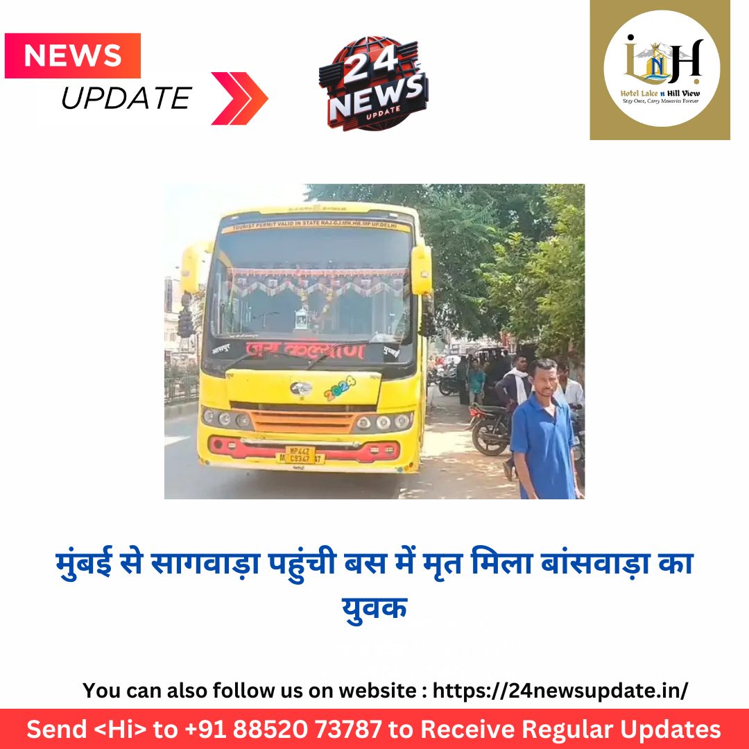 24 न्यूज अपडेट. डूंगरपुर। मुंबई से सागवाड़ा पहुंची निजी बस में एक युवक का शव मिला। पुलिस ने पोस्टमॉर्टम करवा कर परिजनों को सौंपा हैं। बताया गया कि युवक मुंबई से सागवाड़ा तक का टिकट लेकर बस में बैठा। यह बस आज सुबह सागवाड़ा पहुंची तो पूरी बस खाली हो गई मगर युवक बाहर नहीं आया। चेक किया तो वह अचेत अवस्था में मिला। जांच करने पर मृत पाया गया। पुलिस ने शव का पोस्टमॉर्टम करवा परिजनों को सौंपा। थानाधिकारी प्रभुलाल ने मीडिया को बताया कि मुंबई से सागवाड़ा पहुंची निजी बस में एक युवक का शव मिला है। सागवाड़ा में बस खाली होने पर युवक को जगाने पर कोई हरकत नहीं होने से बस की स्टाफ ने बस को पुलिस थाने के पास रोककर पुलिस को इसकी जानकारी दी। पुलिस द्वारा चेक करने पर युवक की मौत हो चुकी थी। थानाधिकारी प्रभुलाल ने मृतक की पहचान बांसवाड़ा निवासी विजयपाल डेन्डोर के रूप में हुई है। विजयपाल सोमवार शाम मुंबई से अपने घर आने के लिए रवाना हुआ था। पुलिस ने घटना की जानकारी मृतक के परिजनों को दी। जिस पर मृतक के परिजन सागवाड़ा थाना पहुंचे। इसके बाद पुलिस ने शव को सागवाड़ा अस्पताल की मोर्चरी में शिफ्ट करवाया। जहां पोस्टमार्टम के बाद पुलिस ने शव परिजनों को सौंप दिया है। वहीं, मामला दर्ज कर जांच शुरू कर दी है।