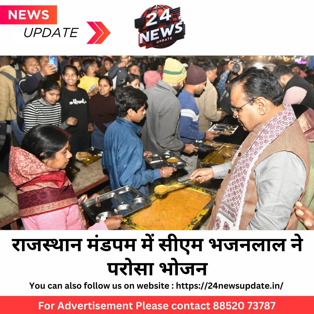 24 न्यूज अपडेट प्रयागराज.। मुख्यमंत्री भजनलाल शर्मा ने शनिवार को प्रयागराज में आयोजित महाकुंभ स्थित ’राजस्थान मंडपम’ में श्रद्धालुओं को भोजन वितरित किया।