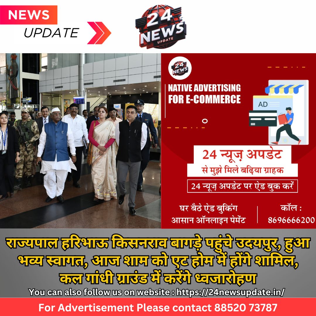 24 न्यूज अपडेट. उदयपुर।राज्यपाल हरिभाऊ बागड़े 25 एवं 26 जनवरी को उदयपुर में है। राज्य स्तरीय गणतंत्र दिवस समारोह के मद्देनजर राज्यपाल हरिभाऊ किसनराव बागड़े शनिवार को उदयपुर के दो दिवसीय प्रवास पर पहुंचे। सांसद मन्नालाल रावत, संभागीय आयुक्त प्रज्ञा केवलरमानी, विधायक तारांचद जैन, जिला कलक्टर अरविन्द पोसवाल सहित अन्य ने उनका स्वागत किया। एयरपोर्ट पर उन्हें गार्ड आॅफ आॅनर दिया गया। डबोक स्थित महाराणा प्रताप एयरपोर्ट से वे सड़क मार्ग से सर्किट हाउस पहुंचे। अपराह्न बाद 3.55 बजे सर्किट हाउस से प्रस्थान कर सहेलियों की बाड़ी पहुंच कर एट होम कार्यक्रम में भाग लेंगे। शाम 5 बजे सहेलियों की बाड़ी से प्रस्थान कर सर्किट हाउस आएंगे। उनका रात्रि विश्राम सर्किट हाउस में हैं। बागड़े 26 जनवरी को सुबह 9 बजे नगर निगम टाउन हॉल परिसर स्थित शहीद स्मारक पहुंच कर पुष्प चक्र अर्पित करेंगे। इसके पश्चात 9.30 बजे महाराणा भूपाल स्टेडियम पहुंच कर गणतंत्र दिवस समारोह में भाग लेंगे। राज्यपाल 11.50 बजे स्टेडियम से प्रस्थान कर 12.25 बजे डबोक एयरपोर्ट पहुंचेंगे तथा वहां से विमान द्वारा जयपुर के लिए प्रस्थान करेंगे।