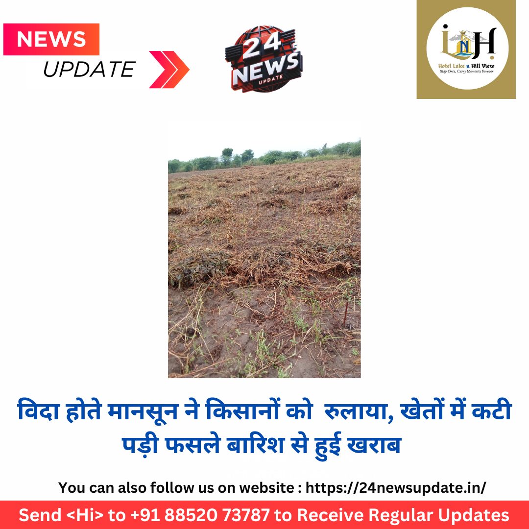 24 न्यूज़ अपडेट भटेड़ा- शाहपुरा बनेड़ा क्षेत्र के भटेड़ा व आसपास के गांवों में मंगलवार सुबह विदा होते मानसून ने किसानों को रुला दिया। किसान सुरेश मेघवंशी ने जानकारी देते हुए बताया कि मानसून की विदाई के समय बारिश से किसानों को नुकसान से चेहरे मुरझा गए हैं। मानसून की विदाई के दौरान बरसात से खरीफ़ की फ़सल ज्वार मक्का उड़द आदि को नुकसान हुआ। किसानों ने ज्वार मक्का उड़द आदि किस्म की फ़सलों को काट लिया था, लेकिन फसलों को सूखने के लिए खेतों में ही छोड़ दिया था।इसी बीच बरसात का दौर शुरू हो गया, जिससे खेतों में कटी पड़ी सभी फसले बारिश में भीग जाने से उनकी गुणवत्ता में कमी आने एवं उनके खराब होने से किसानों को बाजार में उनका कम लाभ मिलने की आंशका से सपनों पर पानी फिर रहा है।आसमानी आफत से दुखी किसान अब सरकार की तरफ भी मदद की निगाह से देख रहे हैं।