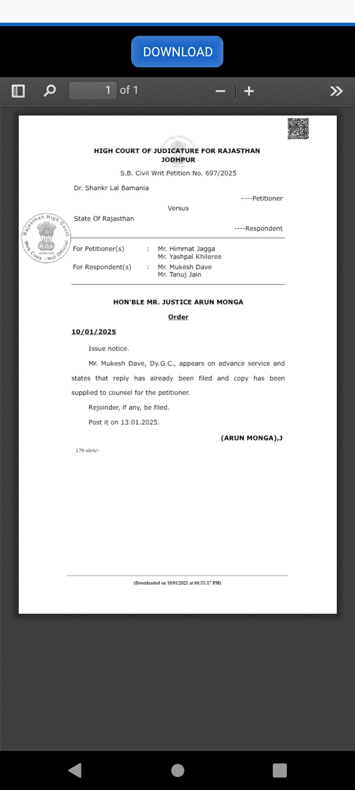 लेकिन विवादित सीएमएचओ को ये नागवार गुजरा एवं वो दुबारा पद के लालच में आज हाई कोर्ट जोधपुर जा पहुचा जहाँ सुनवाई के दौरान कोर्ट में 13 जनवरी की डेट दी है ।