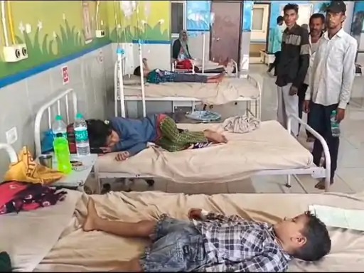 डूंगरपुर। शादी समारोह में खाना खाना भारी पड गया और 50 से अधिक लोग उल्टी दस्त के शिकार हो गए जिन्हें अस्पताल में उपचार के लिए ले जाया गया। इनमें 10 बच्चे और 10 महिलाएं भी शामिल हैं जिनका उपचार डूंगरपुर अस्पताल में किया जा रहा है। उदयपुर जिले के खेरवाड़ा तहसील के मोडीवासा गांव का यह पूरा मामला है। गुरुवार को एक शादी समारोह में 100 से अधिक लोगों का खाना बनाया गया था। मंडप में लापसी, चावल और दाल बनाई गई। मंडप का भोज करने के बाद 50 से अधिक लोगों की तबीयत अचानक खराब हो गई। इनको पहले निजी अस्पताल भर्ती करवाया गया। गुरुवार देर रात तबीयत ज्यादा बिगड़ने पर गांव के सरपंच ईश्वरलाल डामोर ने बीमार महिलाओं और बच्चों को निजी वाहन और एम्बुलेंस की मदद से पहले खेरवाड़ा अस्पताल में भर्ती करवाया। यहां से 10 छोटे बच्चों और 10 महिलाओ को डूंगरपुर जिला अस्पताल में रेफर किया गया है। डॉक्टरों ने बताया कि खाने में फूड पॉइजनिंग हो गई थी। गर्मी की वजह से ऐसा हो सकता है। फिलहाल सभी की हालत खतरे से बाहर है Share this: Share on X (Opens in new window) X Share on Facebook (Opens in new window) Facebook More Email a link to a friend (Opens in new window) Email Share on WhatsApp (Opens in new window) WhatsApp Like this:Like Loading... Related Discover more from 24 News Update Subscribe to get the latest posts sent to your email. Type your email… Subscribe Post navigation सुखेर पुलिस ने एक घण्टे में अपहृत व्यक्ति को छुड़ाया, दो बदमाश गिरफ्तार काली दाल और रोटी खाने के बाद पांच लोग बीमार, महिला की मौत