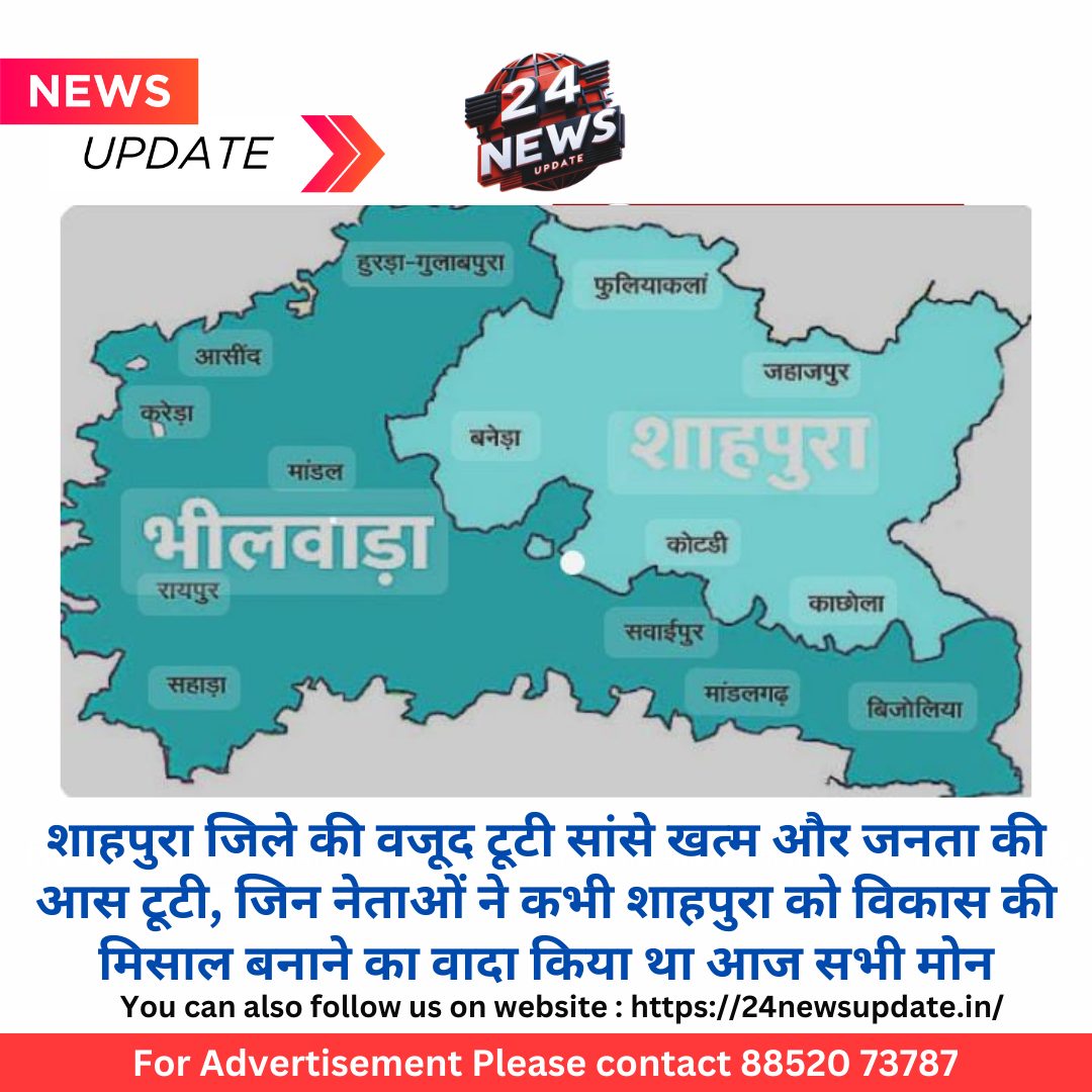 24 न्यूज़ अपडेट शाहपुरा. शाहपुराजिले का वजूद इन दिनों वेंटीलेटर पर था। पता नहीं कब जिले की सांस और जनता की आस दोनो ही टूट जाए। राजस्थान में नए जिलों को खत्म करने की चर्चाओं ने क्षेत्र के विकास के सपनों को धूमिल कर दिया है। एक समय के उत्साह से भरी हुई जनता आज गहरे अंधकार और निराशा में डूबी हुई है।17 मार्च 2023 को जब शाहपुरा को जिला घोषित किया गया, तो पूरे शहर में जश्न मनाया गया। लोगों ने मिठाइयां बांटी, सड़कों पर उत्साह का माहौल था। सबको लगा कि अब शाहपुरा विकास के नए आयाम छुएगा। लेकिन आज जब जिलों को खत्म किया, वह सपना टूटता नजर आ गया। नए साल की खुशियां इस मायूसी के आगे फीकी पड़ गई हैं और लोगों के चेहरे पर उदासी छा गई है। जो उम्मीदें कभी चमक रही थीं, वे अब धुंधली हो गई।शनिवार होने वाली केबिनेट की बैठक में प्रदेश के नए जिलों को लेकर पंवार कमेटी की रिपोर्ट पर फैसले को लेकर क्षेत्रवासियों की निगाहें टिकी हुई थी आज़ जनता को अहसास हुआ कि जिस तरह बीजेपी को वोट देने का नतीज़ा जनता को नए साल का तोहफ़ा दिया वर्तमान सरकार ने