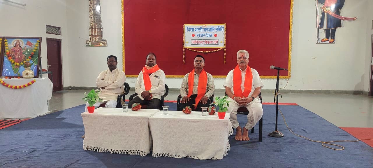 24 न्यूज अपडेट, उदयपुर। विद्या भारती जनजाति समिति राजस्थान के पूर्ण कालिक कार्यकर्त्ताओ का सात दिवसीय व्यक्तित्व विकास आवासीय प्रशिक्षण विद्या निकेतन उच्च माध्यमिक विद्यालय सेक्टर- 4 उदयपुर में चल रहा है। जिसमे बांसवाडा, डूंगरपुर, प्रतापगढ़, उदयपुर व सिरोही जिलों से 80 कार्यकर्ता प्रशिक्षण प्राप्त कर रहे है।शिविर के तीसरे दिन भील समाज उदयपुर के अध्यक्ष देवीलाल दाणा, प्रोफेसर डॉ अजित कुमार भाभोर ,प्रभात आमेटा प्रान्त संस्कार केंद्र प्रमुख व नारायण गमेती सचिव विद्या भारती जनजाति समिति राजस्थान ने मां सरस्वती के समक्ष दीप प्रज्वलित किया। 31 जुलाई रात्रि से प्रारम्भ हुआ शिविर में प्रातः 5बजे जागरण से रात्रि 10.30 बजे दीप मिलीलन तक योगाभ्यास, प्रातः स्मरण, वैचारिक प्रबोधन, गीत वंदना अभ्यास, नई तकनिक का प्रशिक्षण, शारीरिक अभ्यास,संध्या वंदन व रात्रि कार्यक्रम मे प्रश्न मंच, अंतराक्षरी, भजन कीर्तन, प्रतिभा प्रकटिकरण आदि का आयोजन किया जाता है। इसके उद्घाटन सत्र में राष्ट्रीय स्वयंसेवक संघ के प्रांत प्रचारक मुरलीधर जी रहे एवं प्रारंभ की व्यवस्था निमित्त बैठक में विद्या भारती चित्तौड़ प्रांत के सचिव मानेंग जी पटेल रहे। वर्ग में विभिन्न विषयो को लेने के लिए प्रतिदिन विषय विषयज्ञ का सानिध्य प्राप्त होता है। जनजाति महापुरुषों का धर्म व राष्ट्रहित में भूमिका, समाचार लेखन व कानूनी जानकारी, वंदना अभ्यास हेतु क्रमशः प्रभुलाल कटारा, डॉ भारत भूषण , दीपक जी शुक्ला व राजेश चौबीसा का पाथेय प्राप्त हुआ। आज के बौद्धिक सत्र में संस्कार केंद्र की भूमिका रखते हुए वक्ता प्रभात आमेटा ने बताया की भैया, बाहनों को शिक्षा के साथ संस्कार,चिकित्सा,स्वच्छता, पर्यावरण,जीवन मूल्यों, देश भक्ति, भौगोलिक स्थिति आदि की शिक्षा दी जाती है। ताकि आगे जाकर समाज का ठीक प्रकार से नेतृत्व कर सके। अतिथि स्वागत भजन मंडली प्रमुखओं द्वारा, परिचय सह सचिव कल्पेश द्वारा व संचालन विभाग प्रमुख दिनेश द्वारा किया गया। यह जानकारी विभाग भजन मंडली प्रमुख भावजी भाई द्वारा दी गई।