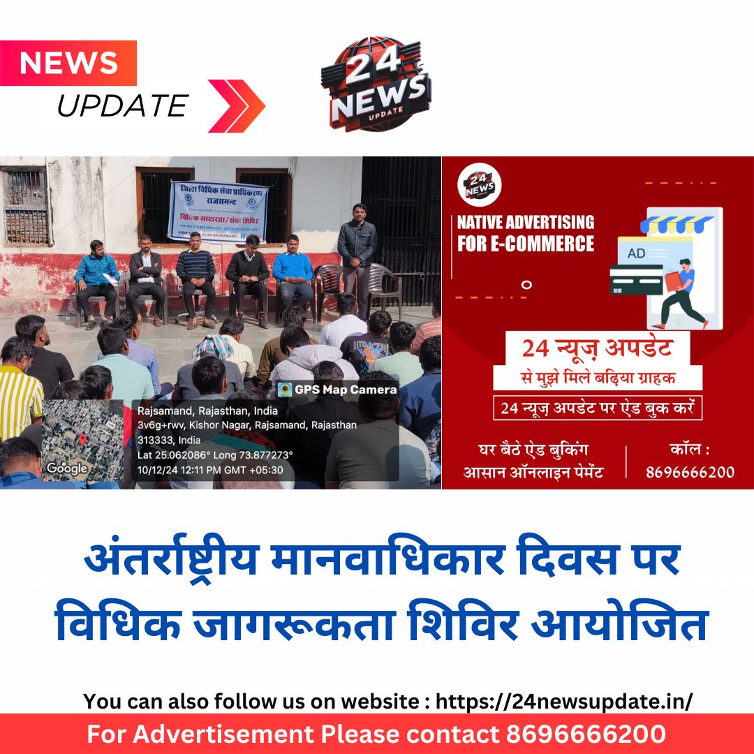 24 न्यूज़ अपडेट राजसमंद.माननीय राजस्थान राज्य विधिक सेवा प्राधिकरण, जयपुर, अध्यक्ष, जिला विधिक सेवा प्राधिकरण राजसमंद श्रीमान् राघवेन्द्र काछवाल व सचिव, जिला विधिक सेवा प्राधिकरण, राजसमंद श्री संतोष अग्रवाल के निर्देशानुसार जिला विधिक सेवा प्राधिकरण, राजसमंद द्वारा प्रतिवर्ष 10 दिसंबर को मनाये जाने वाले अंतर्राष्ट्रीय मानवाधिकार दिवस के उपलक्ष्य में जिला कारागृह, राजसमंद में विधिक जागरूकता शिविर का आयोजन किया गया।