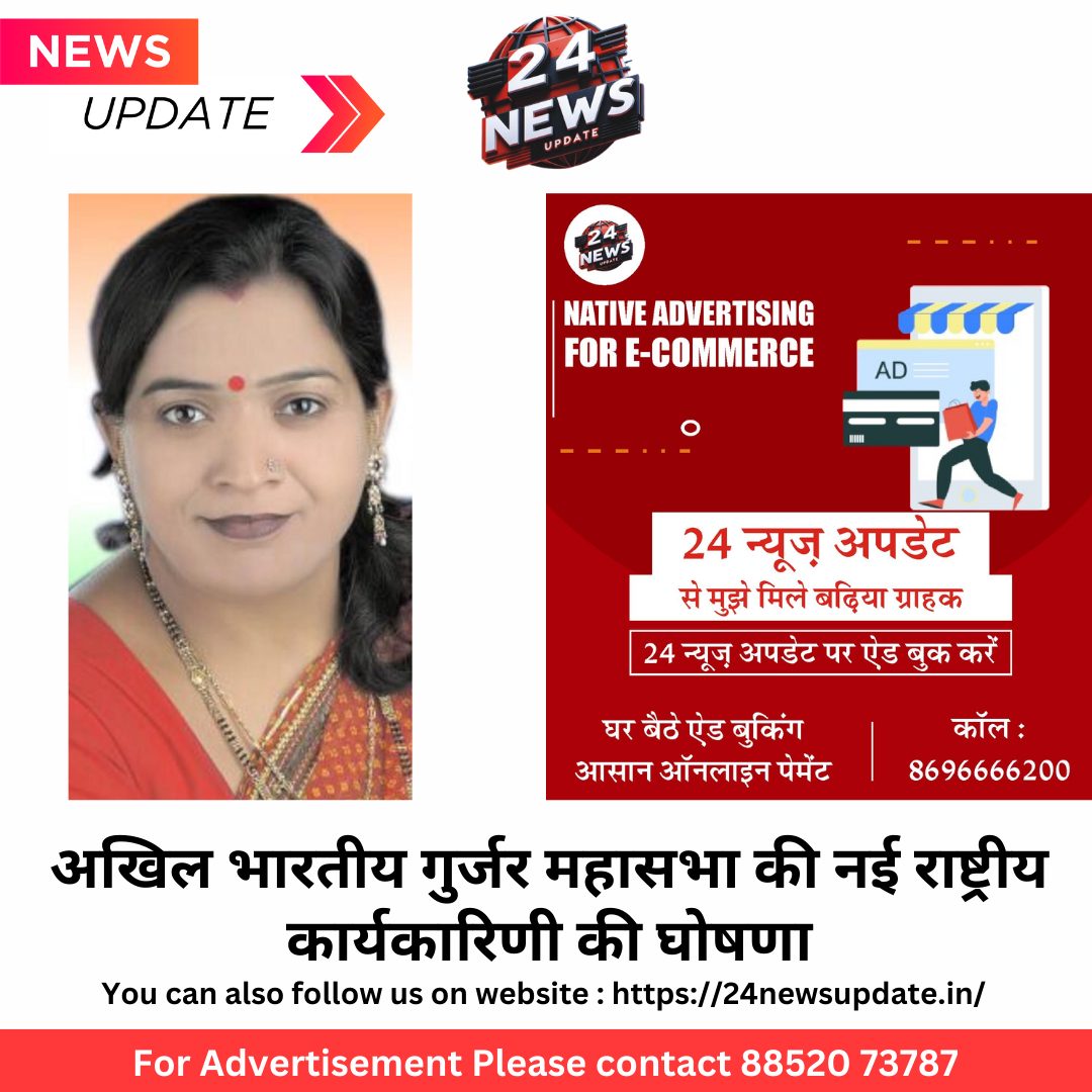 24 न्यूज़ अपडेट उदयपुर, 8 फरवरी। गुर्जर समाज के स्वाभिमान और संगठन की मजबूती की दिशा में ऐतिहासिक कदम उठाते हुए राष्ट्रीय अध्यक्ष श्री दीपक पाटिल की अनुशंसा से अखिल भारतीय गुर्जर महासभा की नई राष्ट्रीय कार्यकारिणी, महिला टीम एवं युवा टीम की घोषणा की गई है।
