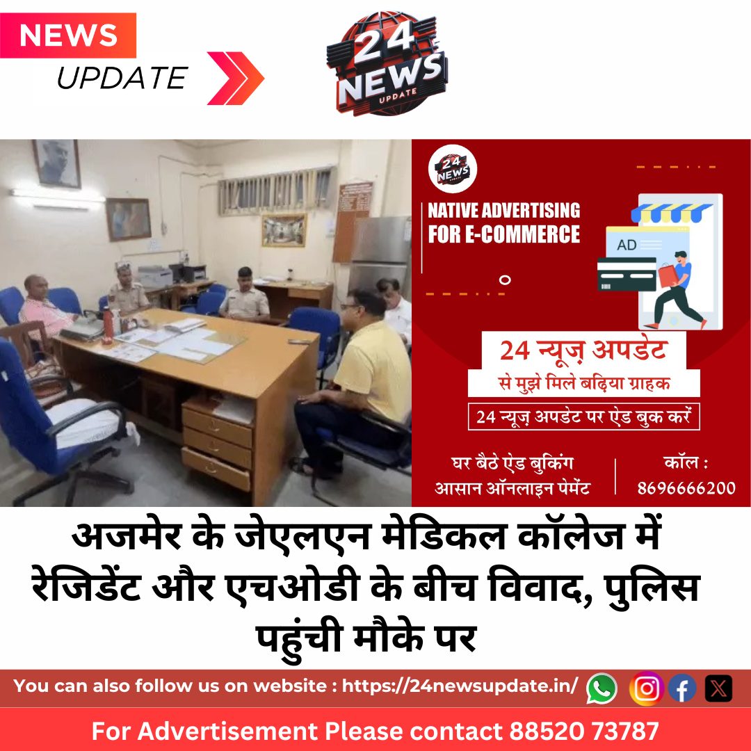 24 NEWS UPDATE अजमेर। जेएलएन मेडिकल कॉलेज के एनाटॉमी विभाग में बुधवार सुबह रेजिडेंट डॉक्टर और विभागाध्यक्ष (एचओडी) के बीच तीखा विवाद हो गया। रेजिडेंट डॉक्टर ने एचओडी पर बदसलूकी करने और मानसिक रूप से प्रताड़ित करने के गंभीर आरोप लगाए हैं। विवाद के दौरान कॉलेज परिसर में कुछ समय के लिए हंगामे जैसी स्थिति बन गई। सूचना मिलते ही कोतवाली थाना पुलिस मौके पर पहुंची और स्थिति को शांत कराया। रेजिडेंट डॉक्टर की ओर से एचओडी के खिलाफ कार्रवाई की मांग की गई है। उनका कहना है कि यह व्यवहार काफी समय से जारी है और उन्होंने पहले भी इसकी शिकायत की थी, लेकिन कोई समाधान नहीं हुआ। वहीं, एनाटॉमी विभाग के एचओडी ने रेजिडेंट द्वारा लगाए गए सभी आरोपों को सिरे से खारिज करते हुए कहा कि रेजिडेंट ने बिना कारण हंगामा किया और उनके आरोप निराधार हैं। मेडिकल कॉलेज प्रशासन की ओर से अभी तक इस मामले में कोई आधिकारिक बयान नहीं आया है।