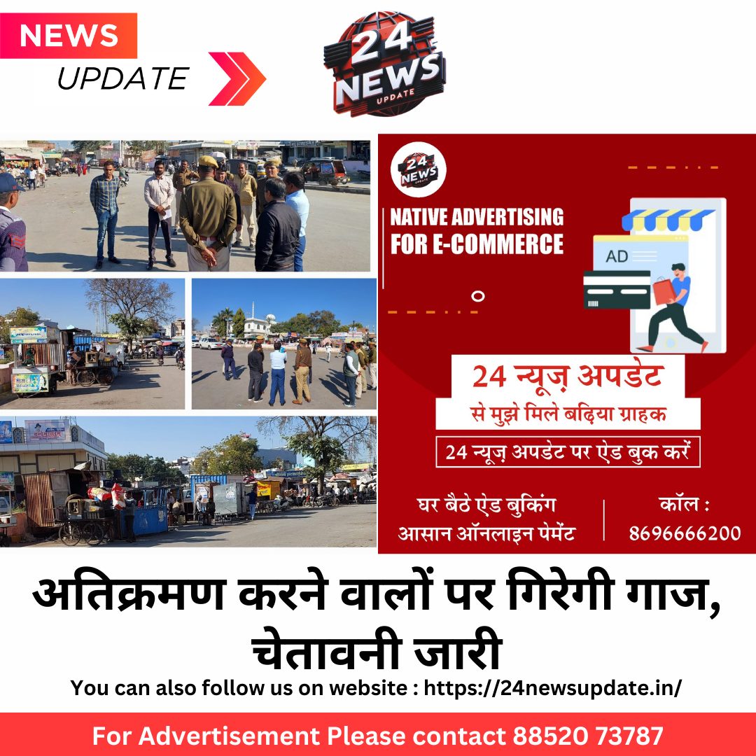 कविता पारख 24 न्यूज अपडेट. निम्बाहेडा। उपखण्ड अधिकारी, निम्बाहेडा एवं प्रशासक नगरपालिका निम्बाहेडा की ओर से शहर निम्बाहेडा को स्वच्छ एवं सुन्दर बनाये रखने के लिए वाहन मालिक, थेला गाडी, बन्द केबिन, सब्जी विक्रेता, थडी वालों को सूचित किया गया है कि नगर पालिका अतिक्रमण दल द्वारा वण्डर चौराहा, जेके चौराहा , अहिंसा सर्कल, शेखावत सर्किल, परषुराम सर्कल एवं बस स्टेण्ड इत्यादि स्थानों से बार-बार अतिर्क्रमण को हटाया जा रहा है। संज्ञान में आया कि लोगों द्वारा पुनः अतिक्रमण मुक्त स्थानों पर अपने वाहन , सब्जी विक्रेता, थेले गाडी आदी खडे करके पुनः अतिक्रमण किया जा रहा है जिससे आमजन, वाहनो को गुजरने में परेषानी का सामना करना पड रहा है। सभी वाहन मालिक, वण्डर चौराहा, जे0के0चौराहा, अहिंसा सर्कल, परषुराम सर्कल, शेखावत सर्कल, इत्यादि स्थानों पर अपने वाहन, सब्जी विक्रेता अपने थेले गाडी, बन्द केबिन, इत्यादि निर्धारित स्थान पर खडे करें अन्यथा जब्ती की नियमानुसार कार्यवाही अमल में लाई जाएगी। Share this: Share on X (Opens in new window) X Share on Facebook (Opens in new window) Facebook More Email a link to a friend (Opens in new window) Email Share on WhatsApp (Opens in new window) WhatsApp Like this:Like Loading... Related Discover more from 24 News Update Subscribe to get the latest posts sent to your email. Type your email… Subscribe Post navigation पीएम श्री राजकीय उच्च माध्यमिक विद्यालय जावदा II में हुआ तीन दिवसीय स्वास्थ्य जाँच शिविर का प्रारंभ हादसे के बाद केबिन का गेट नहीं खोल पाया, ट्रेलर का ड्राइवर जिंदा जल गया