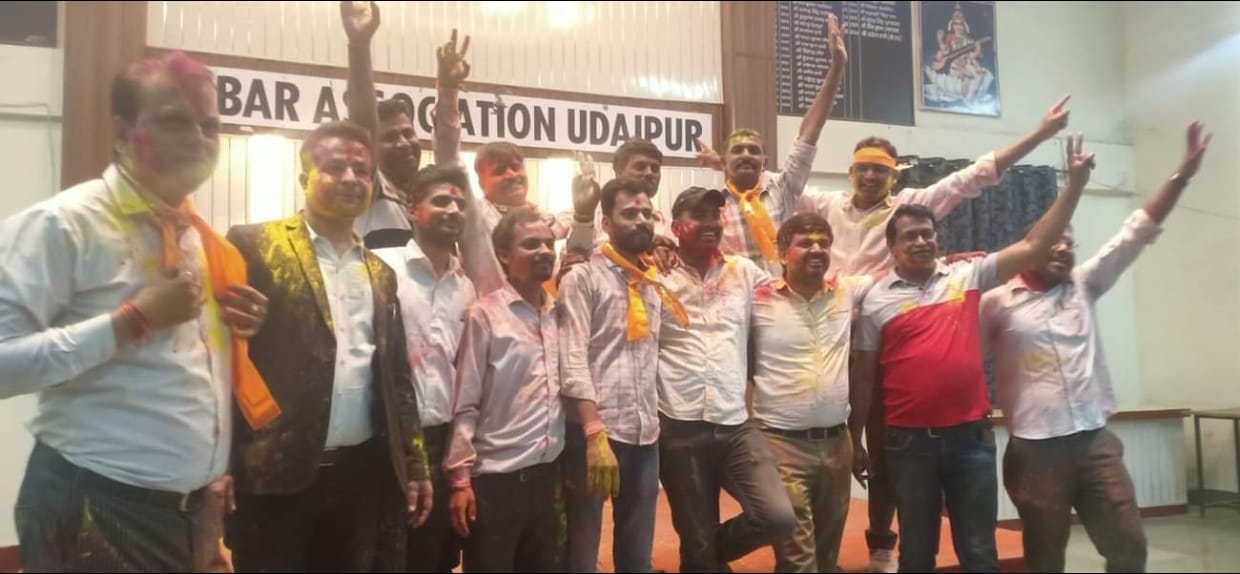 उदयपुर। बार एसोसिएशन उदयपुर की ओर से गुरूवार को होली मिलन समारोह का आयोजन किया गया। समारोह के मुख्य अतिथि जिला एवं स्टेशन न्यायाधीश चंचल मिश्रा थे। बार एसोसिएशन उदयपुर के महासचिव राजेश शर्मा ने बताया कि सबसे पहले अधिवक्ताओं ने गैर नृत्य खेलते हुए पारम्परिक अंदाज में कार्यक्रम का शानदार आगाज किया। उसके बाद अतिथि गण के आवागमन पर होली की मस्ती में डूबे व संस्कृति को जीवंत रखने वाले गीतों व हास्य रस में डूबी प्रस्तुतियों से सबका दिल जीत लिया। अतिथियों का स्वागत उपराणा एवं रंग से तिलक लगाकर किया गया। कार्यक्रम में न्यायिक अधिकारी गण व वरिष्ठ अधिवक्तागण और बार एसोसिएशन कार्यकारिणी के सदस्य अध्यक्ष भरत जोशी, उपाध्यक्ष बंशीलाल गवारिया, सचिव अक्षय आचार्य, वित्त सचिव पंकज तंबोली, पुस्तकालय सचिव गोपाल लाल जोशी, सहवृत्त सदस्य गिरीश माथुर, अनिल आसोलिया, रितु मेहता, निशांत बागड़ी, मनमीत सिंह वाधवा, लोकेश जैन के साथ बार एसोसिएशन के पूर्व अध्यक्ष, युवा अधिवक्ता, वरिष्ठ अधिवक्ता, महिला अधिवक्ता आदि की उपस्थिति रही। कई अधिवक्ताओं ने विविध प्रस्तुतियां देकर होली मिलन को यादगार बनाया। भोजन के बाद होली खेलते हुए कार्यक्रम का समापन किया गया। कार्यक्रम का संचालन बार एसोसिएशन के महासचिव राजेश शर्मा ने किया।