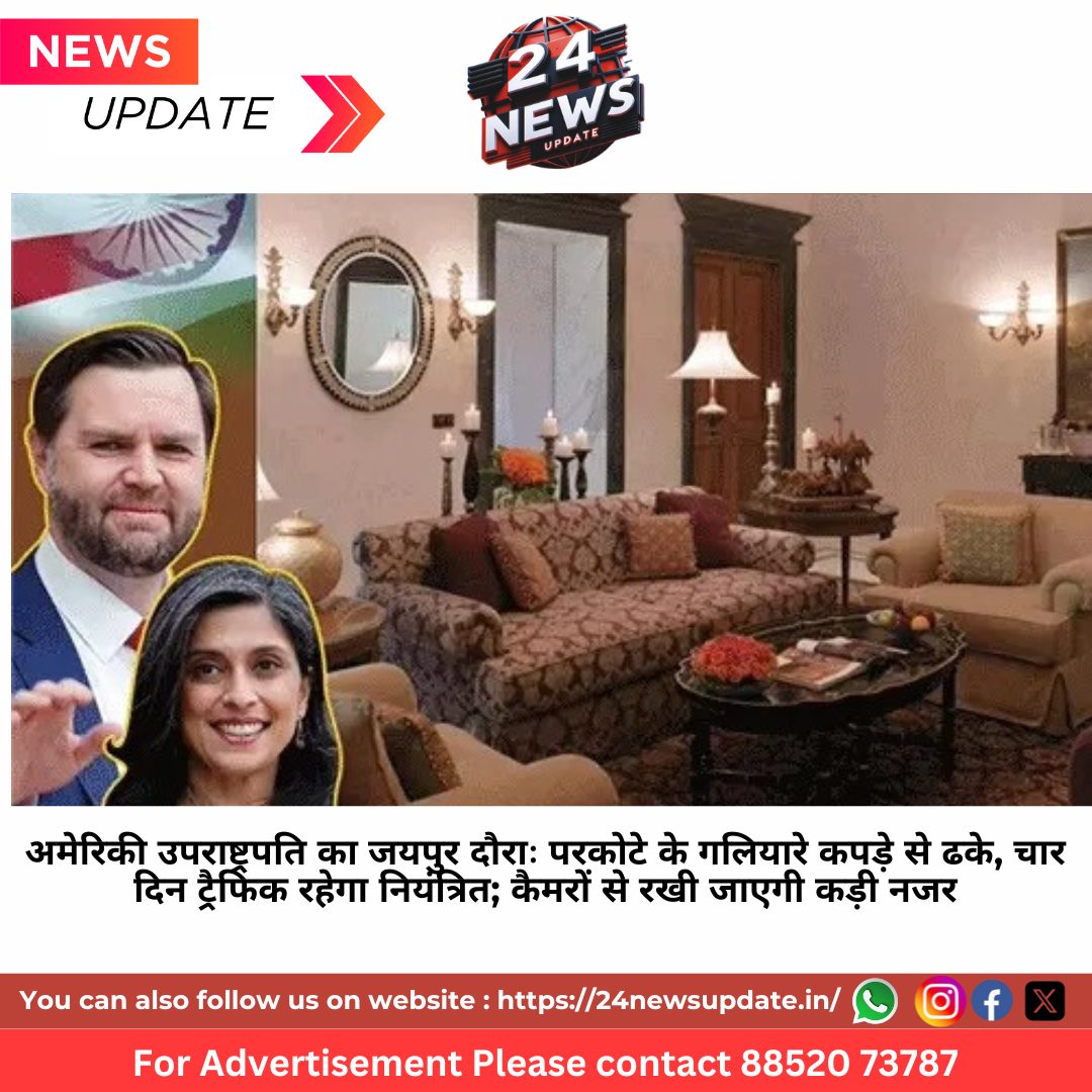 24 न्यूज अपडेट, जयपुर। अमेरिका के उपराष्ट्रपति जेम्स डेविड -जेडी वेंस आज रात 9ः30 बजे जयपुर पहुंचेंगे और चार दिन (21 से 24 अप्रैल) शहर में प्रवास करेंगे। इस दौरान शहर में व्यापक सुरक्षा इंतजाम किए गए हैं और ट्रैफिक व्यवस्था में भी कई बदलाव किए गए हैं।