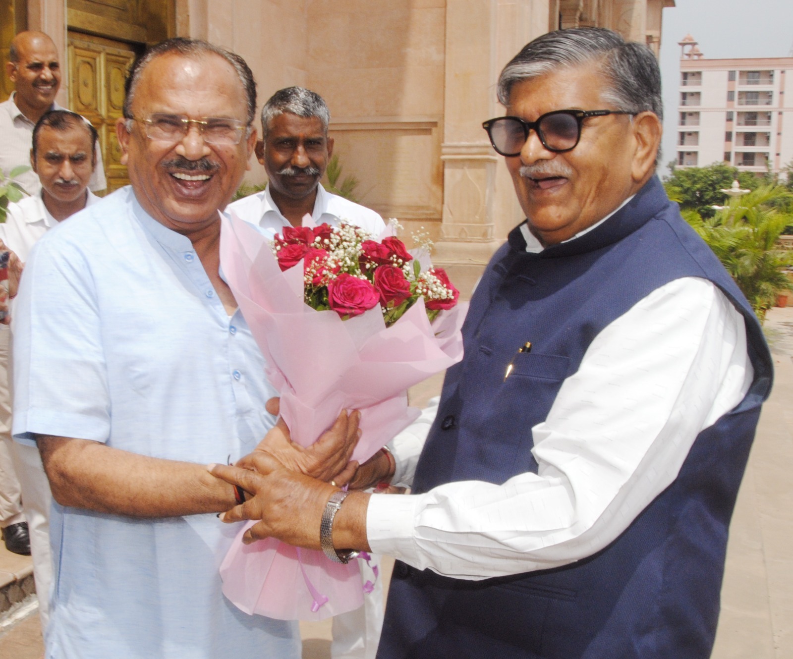 जयपुर। असम के राज्यपाल गुलाब चन्द कटारिया बुधवार को विधान सभा आये। स्पीकर वासुदेव देवनानी ने पुष्प गुच्छ भेंट कर उनका स्वागत किया। कटारिया देवनानी की लगभग आधे घंटे की मुलाकात भी हुई। कटारिया ने विधान सभा की कार्यवाही भी देखी। विधान सभा अध्यक्ष वासुदेव देवनानी ने सदन को अवगत करवाया कि असम के राज्यपाल गुलाब चन्द कटारिया राज्यपाल दीर्घा में बैठकर सदन की कार्यवाही देख रहे है। राजस्थान विधान सभा का डिजिटल म्यूजियम देखने आये शिव के विभिन्न विद्यालयों के बच्चों से स्पीकर श्री देवनानी ने परिचय लिया। उनके विद्यालय और शिक्षा की जानकारी ली। असम के राज्यपाल श्री कटारिया भी बच्चों से मिले।