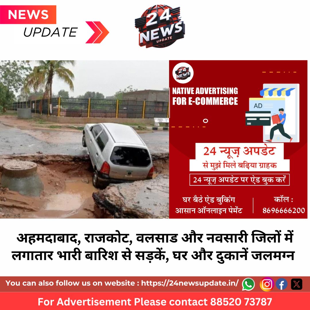 गुजरात के अहमदाबाद, राजकोट, वलसाड और नवसारी जिलों में लगातार भारी बारिश से सड़कें, घर और दुकानें जलमग्न हो गई हैं। कई नदियां उफान पर हैं और लोगों को सुरक्षित स्थानों पर भेजा जा रहा है। उधर, झारखंड के जमशेदपुर, रांची और बोकारो में भी बारिश ने कहर बरपा रखा है। तेनुघाट और मैथन डैम के फाटक खोलने पड़े हैं, जिससे निचले इलाकों में बाढ़ का खतरा मंडरा रहा है।