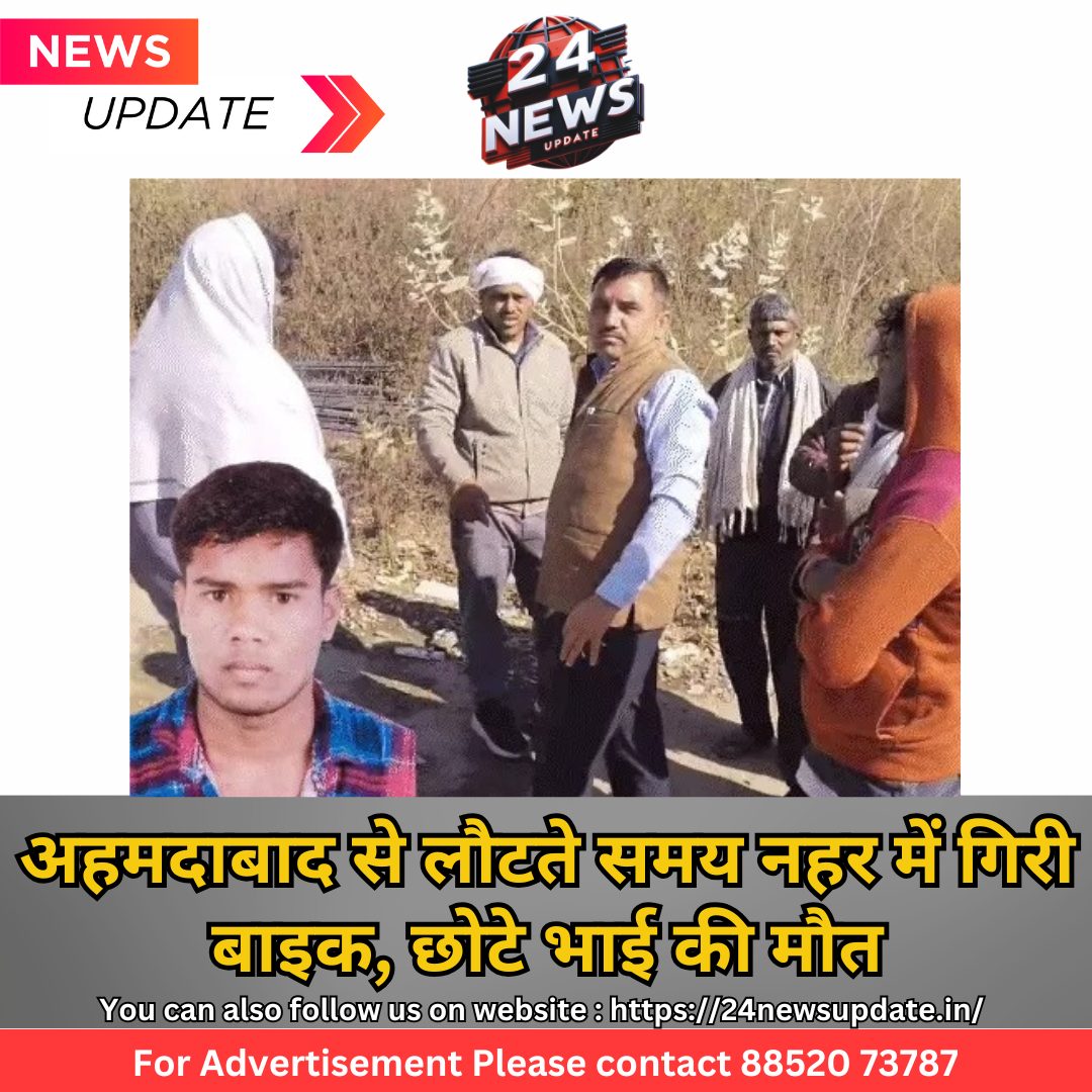 24 न्यूज अपडेट. डूंगरपुर। अहमदाबाद से गांव लौट रहे दो सगे भाइयों की बाइक अनियंत्रित होकर सोमकमला आम्बा बांध की दाई नहर में गिर गई। हादसे में छोटे भाई की डूबने से मौत हो गई, जबकि बड़े भाई ने तैरकर जान बचा ली। यह दर्दनाक हादसा गुरुवार सुबह 5 बजे आसपुर थाना क्षेत्र के टोकवासा मोड़ पर हुआ। मृतक कांतिलाल (22) और उसका बड़ा भाई शंकरलाल (27) अहमदाबाद में मजदूरी करते थे। बुधवार रात 8 बजे दोनों बाइक से अहमदाबाद से अपने गांव गदेया (सलूंबर जिले) लौट रहे थे। गांव से 25 किमी पहले टोकवासा मोड़ पर उनकी बाइक अनियंत्रित होकर एबीसी नहर में गिर गई। शंकरलाल ने तैरकर अपनी जान बचा ली, लेकिन कांतिलाल पानी में डूब गया। शंकरलाल किसी तरह बाहर निकला और वार्ड पंच केशवलाल को फोन कर मदद मांगी। आसपुर पुलिस मौके पर पहुंची और नहर का पानी बंद करवाया। कुछ देर बाद कांतिलाल का शव पानी में तैरता हुआ मिला। शव को सीएचसी आसपुर ले जाया गया, जहां डॉक्टरों ने उसे मृत घोषित कर दिया। घायल शंकरलाल का इलाज सीएचसी में जारी है। परिवार पर टूटा दुखों का पहाड़ कांतिलाल की शादी 5 साल पहले हुई थी और उसकी 2 साल की बेटी है। परिवार में गहरा शोक छाया हुआ है। पुलिस ने मामला दर्ज कर पोस्टमॉर्टम के बाद शव परिजनों को सौंप दिया। यह हादसा तेज रफ्तार और अनियंत्रित बाइक के कारण हुआ, जिससे एक युवक की जान चली गई। अहमदाबाद से मजदूरी कर लौट रहे इन भाइयों का यह सफर उनके परिवार के लिए कभी न भूलने वाला दर्द बन गया।