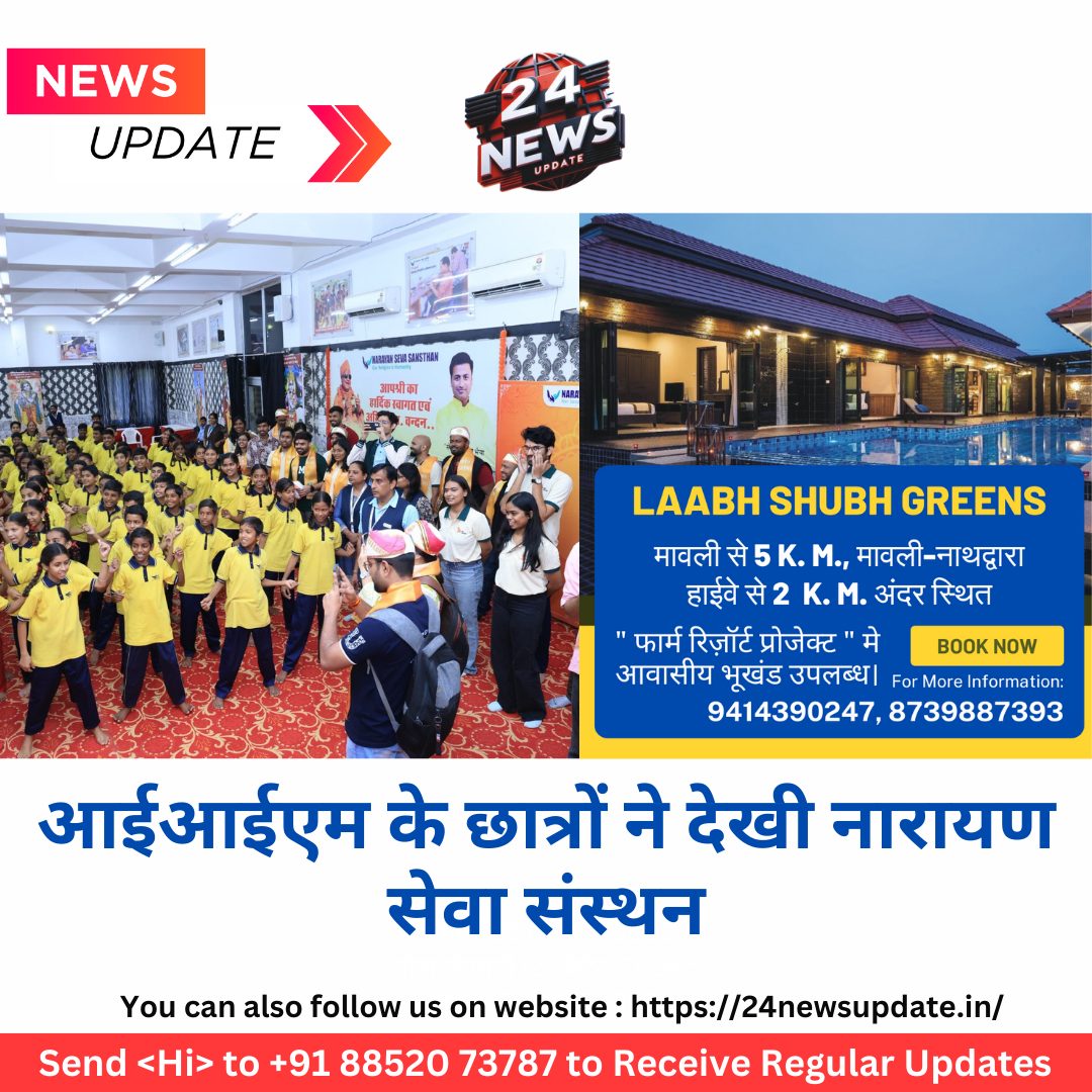 24 न्यूज़ अपडेट उदयपुर। इंडियन इंस्टीट्यूट ऑफ मैनेजमेंट उदयपुर के छात्रों ने शनिवार को नारायण सेवा संस्थान की सेवाओं को देखा।
