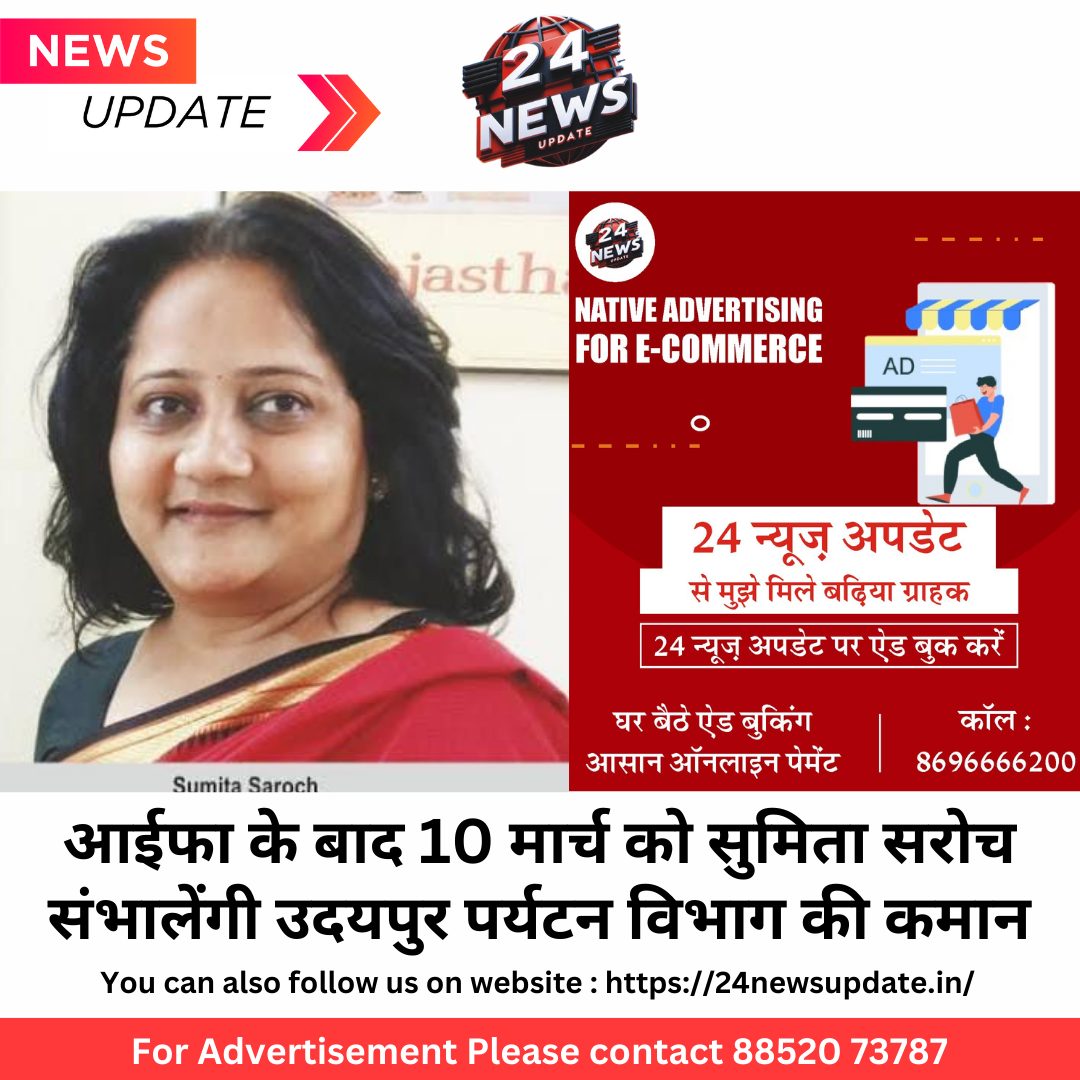 24 न्यूज अपडेट. उदयपुर। पर्यटन विभाग के संयुक्त शासन सचिव के आदेशानुसार सुमिता सरोच को उदयपुर क्षेत्रीय पर्यटन कार्यालय की नई जिम्मेदारी सौंपी गई है। वर्तमान में सुमिता पर्यटन विभाग मुख्यालय, जयपुर में संयुक्त निदेशक के पद पर कार्यरत हैं। सुमिता सरोच आइफा अवॉर्ड्स के आयोजन के चलते 10 मार्च के बाद उदयपुर जॉइन करेंगी। इस बड़े इवेंट के कारण उन्हें फिलहाल जयपुर में कार्यरत रहना होगा।