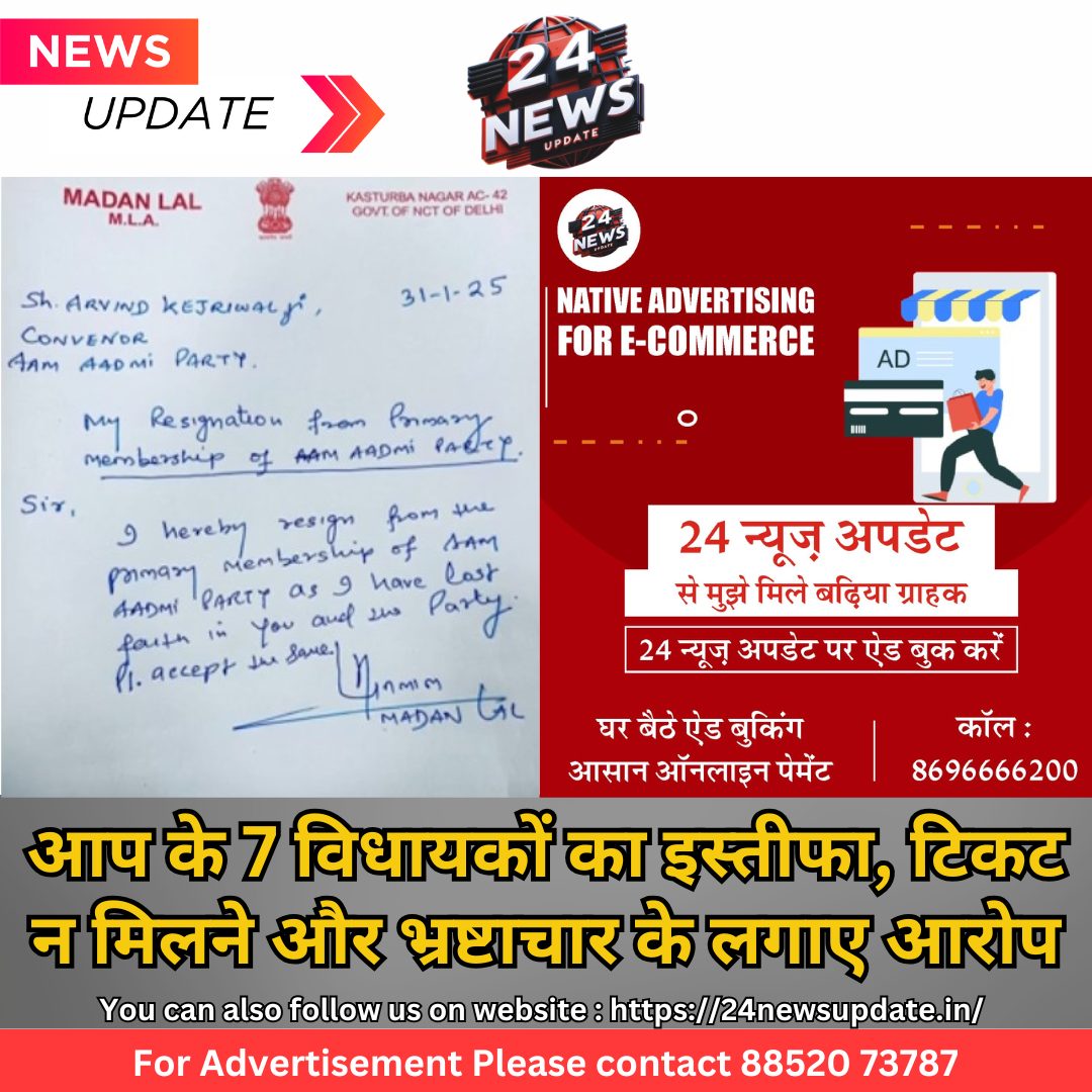 24 न्यूज अपडेट. नई दिल्ली। दिल्ली विधानसभा चुनाव से ठीक 5 दिन पहले आम आदमी पार्टी को बड़ा झटका लगा है। पार्टी के 7 मौजूदा विधायकों ने टिकट न मिलने और पार्टी में कथित भ्रष्टाचार का हवाला देते हुए इस्तीफा दे दिया है। महरौली विधायक नरेश यादव का बयान नरेश यादव, जो महरौली सीट से दो बार विधायक रह चुके हैं, ने इस्तीफा देते हुए कहा, आप भ्रष्टाचार के खिलाफ बनी थी, लेकिन अब खुद भ्रष्टाचार के दलदल में फंस गई है।“ 10 दिसंबर को सीलमपुर विधायक अब्दुल रहमान ने भी पार्टी छोड़ दी थी। उन्होंने आप पर मुस्लिम समुदाय के प्रति बेरुखी का आरोप लगाया और कहा था कि “केजरीवाल खुद ही पार्टी को खत्म करने पर तुले हैं।“ इस बार 17 मौजूदा विधायकों का टिकट काट दिया, जिसके चलते कई नेताओं में असंतोष पनप गया। इस्तीफा देने वाले विधायकों का कहना है कि टिकट बंटवारे में पारदर्शिता नहीं रखी गई। दिल्ली चुनाव का शेड्यूल के अनुसार वोटिंगः 5 फरवरी रिजल्टः 8 फरवरी, कुल 70 सीटों पर 699 उम्मीदवार मैदान में हैं।