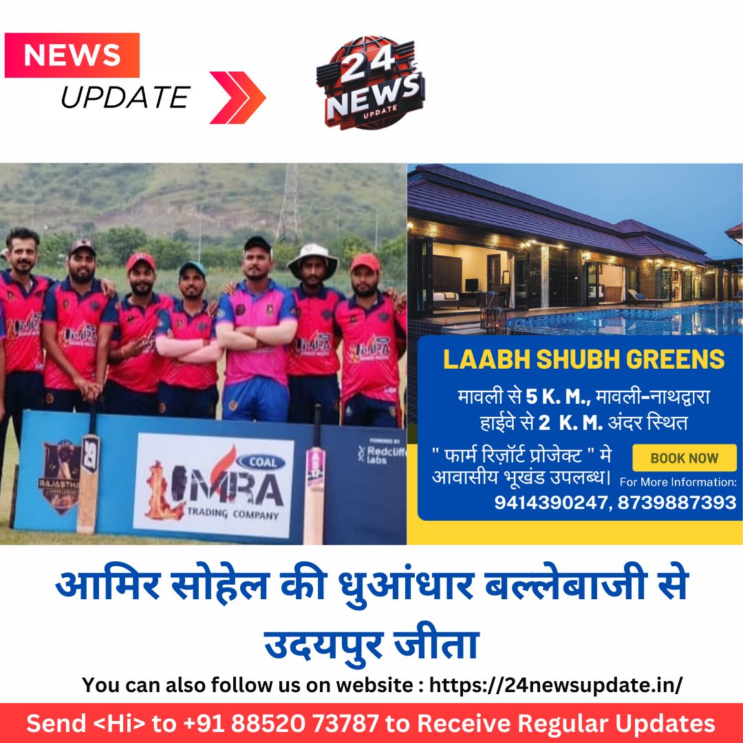 24 न्यूज़ अपडेट उदयपुर। राजस्थान सुपर लीग क्रिकेट टूर्नामेंट खेल गांव उदयपुर पिछले तीन दिनों से चल रहें हैं। तीसरे दिन के खेल में कुल पांच मुकाबले खेले गए।आयोजन समिति के शाहरुख खान ने बताया कि दूसरा मुकाबला उदयपुर रॉयल्स व चित्तौड़गढ़ वॉरियर्स के बीच खेला गया ।उदयपुर रॉयल्स टीम व लिमरा चारकोल समूह के मालिक गुलाम नबी ने बताया कि उदयपुर रॉयल्स ने टॉस जीतकर क्षेत्ररक्षण का फैसला किया। चित्तौड़ ने निर्धारित 10 ओवर में उदयपुर रॉयल्स को 90 रन का लक्ष्य दिया। उदयपुर रायल्स एक समय असमंजस की स्थिति में दिखती हुई उदयपुर की टीम को शेखावाटी के शेर आमिर सोहेल और मेवाड़ की शान सद्दाम शेख ने धुआंधार बल्लेबाजी कर विजयश्री दिलाई। आमिर सोहेल ने 18 गेंद पर अर्धशतकीय पारी खेल कर मैन ऑफ द मैच घोषित किया गया । अन्य मुकाबलो में राजसमंद रॉयल्स और जोधपुर टाइटंस ने भी विजय हासिल की। मुख्य अतिथि उदयपुर जिलाधीश अरविंद पोसवाल व जिला खेल अधिकारी महेश पालीवाल ने आमिर सोहेल को मैन आफ मैच का पुरस्कार दिया।