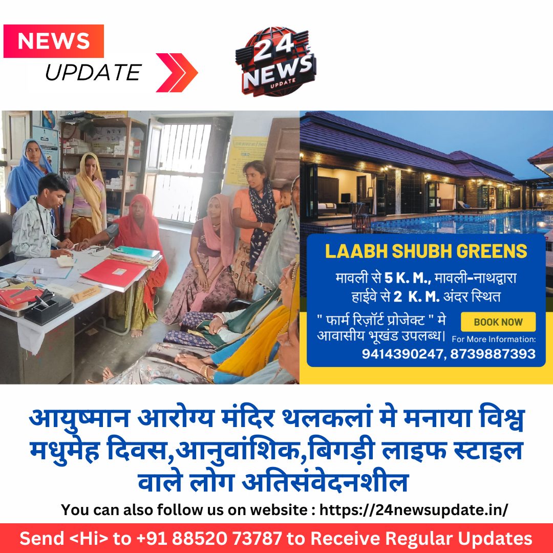 24 न्यूज़ अपडेट शाहपुरा. काछोला तहसील क्षेत्र के थलकलां आयुष्मान आरोग्य मंदिर – उप स्वास्थ्य केंद्र थलकलां मे विश्व मधुमेह दिवस पर बीपी और शुगर जांच कर ग्रामीणों को मधुमेह रोग के बचाव उपचार एवम रोकथाम के बारे में जागरूक किया ! और 45 ओपीडी मरीजो का बीपी शुगर वजन चेक किया और आभा आईडी बनाई गई और पॉजिटिव मरीजो को बीपी पासपोर्ट कार्ड दिया ताकि माहवार फॉलो अप का रिकॉर्ड ऑनलाइन एनसीडी पोर्टल पर अपडेट किया जा सके ! आयुष्मान आरोग्य मंदिर प्रभारी सामुदायिक स्वास्थ्य अधिकारी ( सीएचओ) चांदमल रेगर ने स्क्रीनिंग कैम्प आयोजित कर थलकलां ग्रामवासियों का बीपी शुगर चेक किया !