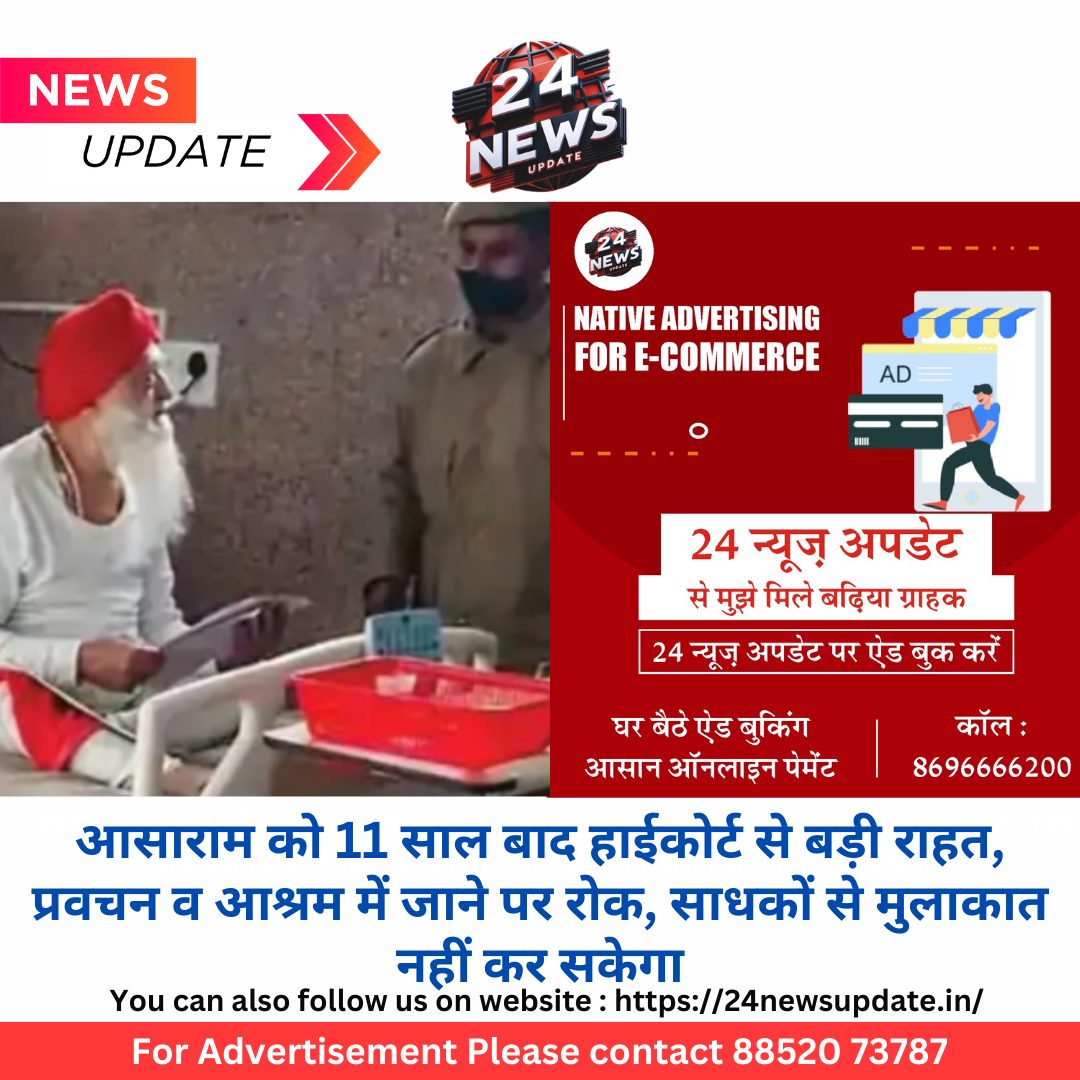 24 न्यूज अपडेट. जोधपुर। नाबालिग से रेप के मामले में जोधपुर जेल में बंद आसाराम को राजस्थान हाईकोर्ट से राहत मिली है। सजा स्थगन व जमानत के लिए पेश याचिका पर सुनवाई के बाद उम्र और स्वास्थ्य को देखते हुए आसाराम को 31 मार्च तक अंतरिम जमानत दी गई है। 11 साल बाद जमानत पर जेल से बाहर आएगा। आसाराम को 2013 में गिरफ्तार किया था। इसके बाद से आसाराम जेल में है। उसे अप्रैल 2018 को आजीवन कारावास की सजा सुनाई। आसाराम फिलहाल जोधपुर स्थित आरोग्यम अस्पताल में भर्ती है। कोर्ट ने जो शर्तें रखी हैं उसके अनुसार आसाराम फॉलोअर्स से नहीं मिल सकता। साधकों से समूह में मुलाकात नहीं करेगा। मीडिया से बात नहीं कर सकेगा और न ही सार्वजनिक रूप से प्रवचन कर सकेगा। 3 गार्ड साथ रहेंगे, जिसका खर्चा आसाराम को उठाना होगा। किसी भी आश्रम में रहने की अनुमति होगी। अस्पताल या आश्रम में इलाज करवाने की अनुमति रहेगी। 7 जनवरी को सुप्रीम कोर्ट ने सूरत के आश्रम में महिला अनुयायी से रेप के मामले में 31 मार्च तक जमानत दी थी इससे पहले। Share this: Share on X (Opens in new window) X Share on Facebook (Opens in new window) Facebook More Email a link to a friend (Opens in new window) Email Share on WhatsApp (Opens in new window) WhatsApp Like this:Like Loading... Related Discover more from 24 News Update Subscribe to get the latest posts sent to your email. Type your email… Subscribe Post navigation स्पा सेंटर की आड़ में चल रहा था देह व्यापार, 5 लड़कियां सहित 8 गिरफ्तार पतंगबाजी के दौरान दो समुदाय के युवकों में विवाद के बाद तनाव, माहौल गर्माया, पुलिस तैनात