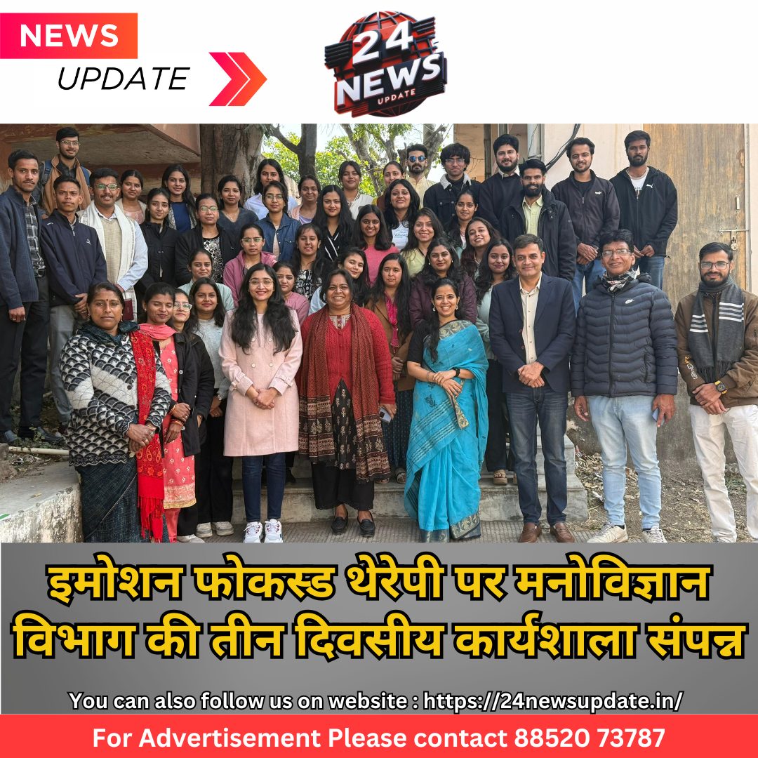 24 न्यूज अपडेट, उदयपुर। मोहनलाल सुखाड़िया विश्वविद्यालय के मनोविज्ञान विभाग में राष्ट्रीय उच्चतर शिक्षा अभियान के अंतर्गत इमोशन फोकस्ड थेरेपी विषयक तीन दिवसीय कार्यशाला का आयोजन हुआ।इस कार्यशाला की सरंक्षक प्रो सुनीता मिश्रा, कुलपति, मोहनलाल सुखाड़िया विश्वविद्यालय एवं अध्यक्ष प्रो हेमंत द्विवेदी, अधिष्ठाता, कला महाविद्यालय रहे। रुसा प्रोजेक्ट समन्वयक मनोविज्ञान विभाग के प्रभारी विभागाध्यक्ष डॉ. तरुण कुमार शर्मा ने बताया कि कार्यशाला में मुख्य वक्ता असीरा चिरमुले, डायरेक्टर अथा सेंटर, मुंबई रही। आयोजन सचिव डॉ. रश्मि सिंह ने बताया कि कार्यशाला 16 से 18 जनवरी तक आयोजित हुई जिसमें ई.एफ.टी के तकनीक से जुड़े विभिन्न प्रशिक्षण सत्र हुए। मुख्य वक्ता ने संवादों को सही नाम देना, उनकी थीम को पहचानना, उन्हें स्वस्थ तरीकों से “डील” करना, ग्राउंडिंग तकनीक, हैंड ब्रीदिंग एक्सरसाइज़, ग्लिमर्स, माइंडफलनेस, परामर्श कौशल, बिहेवियरल एक्टिवेशन, रुल ऑफ पी पी एम एस, स्टैप्स ऑफ थेरपी का प्रशिक्षण दिया। असीरा ने थेरपी सेशन का लाइव डिमांस्ट्रेशन दिखाकर प्रतिभागियों को यह समझाया कि कैसे एक क्लाइंट के साथ थेराप्यूटिक एलायंस बनाना चाहिए। उन्होनें स्वीकार्यता और प्रतिबद्धता चिकित्सा के प्रमुख सिद्धांतों जैसे संज्ञानात्मक विसरण, कष्ट सहनशीलता, मूल्य स्पष्टता और टी. आय. पी. पी के बारे में भी विस्तृत जानकारी प्रदान करी। इसमें कुल ५५ प्रतिभागी मौजूद थे। कार्यशाला में डॉ. अनीता जोया, डॉ. सबिहा खान, एवं डॉ. रमेश बागड़ी भी मौजूद थे। Share this: Share on X (Opens in new window) X Share on Facebook (Opens in new window) Facebook More Email a link to a friend (Opens in new window) Email Share on WhatsApp (Opens in new window) WhatsApp Like this:Like Loading... Related Discover more from 24 News Update Subscribe to get the latest posts sent to your email. Type your email… Subscribe Post navigation विधि महाविद्यालय में मूट कोर्ट, एक आरोपी बरी, एक को आजीवन कारावास आदिवासियो को रोजगार से वंचित करने व अन्य मांगों को लेकर 10 फरवरी को राजभवन पर देंगे धरना