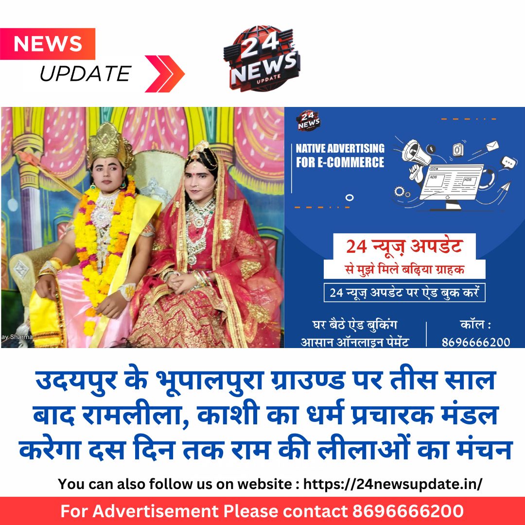 24 न्यूज अपडेट उदयपुर। शहर के भूपालपुरा में ऐतिहासिक रामलीला का मंचन 30 नवम्बर से शुरू होगा। दस दिन तक चलने वाली राम की लीलाओं का यह महोत्सव भव्य और ऐतिहासिक बनाने के लिये तैयारियां पुरी की जा चुकी हैं। रामलीला का मंचन काशी का प्रसिद्ध धर्म प्रचारक मंडल द्वारा किया जायेगा। रामलीला का शुभारंभ बालाजी महाराज का ध्वज पूजन करने के साथ ही गणमान्य नागरिकों द्वारा दीप प्रज्वलन के साथ होगा।भूपालपुरा ग्राउण्ड में 30 नवम्बर से 9 दिसम्बर तक ऐतिहासिक रामलीला महोत्सव का आयोजन होगा। 30 नवम्बर को भगवान श्रीराम के जन्म की लीलाओं के मंचन के साथ रामलीला का शुभारंभ होगा। प्रतिदिन रात्रि 8.00 बजे से 11.00 बजे तक भगवान राम की विभिन्न लीलाओं का आयोजन होगा जिसमें श्रीराम जन्म, रावण वध, राजतिलक तक की लीलाओं का विस्तार से भव्य अभिनय किया जायेगा। काशी के धर्म प्रचारक मंडल में 25 कलाकार अभिनय करते हैं जो श्रीराम के आदर्श जीवन को एक बार फिर रामभक्तों के सामने जीवंत कर देते हैं।भूपालपुरा समिति की ओर से उमेश श्रीमाली ने बताया कि तीस साल बाद फिर से भूपालपुरा ग्राउण्ड में रामलीला का मंचन किया जा रहा हैं। श्रीराम के पॉंच सौ वर्षो बाद अयोध्या में अपने महल में विराजित होने के बाद रामलीला की विलुप्त होती संस्कृति को बचाने के उदृदेश्य से जनसहयोग से रामलीला का आयोजन किया जा रहा हैंं, इसका उदृदेश्य धर्म का प्रचार प्रसार करना भी हैं। रामलीला मंचन के दौरान मंडल की और से 5100 हनुमान चालीसा भी वितरित की जायेगा। Share this: Share on X (Opens in new window) X Share on Facebook (Opens in new window) Facebook More Email a link to a friend (Opens in new window) Email Share on WhatsApp (Opens in new window) WhatsApp Like this:Like Loading... Related Discover more from 24 News Update Subscribe to get the latest posts sent to your email. Type your email… Subscribe Post navigation बीएन प्रबंध संकाय के द्वारा दो दिवसीय ऊर्जा मेनेजमेंट फेस्ट के दूसरे दिन विभिन्न प्रबंधकीय प्रतियोगिताओं का आयोजन किया गया समाजसेवी के के गुप्ता मेवाड़ जनशक्ति दल के संरक्षक मनोनीत