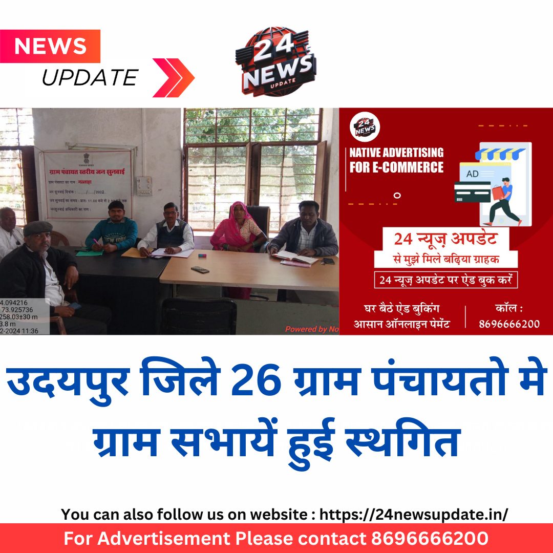 24 न्यूज़ अपडेट.उदयपुर । जिले मे सभी 26 ग्राम पंचायतो मे आज होने वाली महानरेगा सामाजिक अंकेक्षण की ग्राम सभाये स्थगित हो गई l कारण पूछने पर जानकारी दी गई कि पंचायत राज कानून मे नियम बना हुआ है कि ग्राम सभा करने के लिये ग्राम पंचायत के कुल मतदाताओ की वर्गवार महिला पुरुष की दस प्रतिशत उपस्थिति अनिवार्य है और इस नियम से गणपूर्ति पूर्ण नहीं होने पर ग्राम सभा की कार्यवाही नहीं की जा सकती है व ग्राम सभा स्थगित करनी पडती है, इस कारण से जिले मे आज होने वाली समस्त 26 ग्राम पंचायतो की ग्राम सभाओ को स्थगित किया गया है l नाम नहीं बताने की शर्त पर पता लगा है कि नियम भले जो भी हो, ग्राम सभा नहीं होने का स्पष्ट कारण जिला संसाधन व्यक्ति (DRP) संजय सिंह राठौड़ और ग्राम विकास अधिकारी संघ के बीच की खिंचतान हैl संघ द्वारा दो दिवस पूर्व ही सीईओ साहब उदयपुर, एसीईओ साहब सलूम्बर एवं सभी विकास अधिकारियो को जिला संसाधन व्यक्ति संजय सिंह राठौड़ पर पैसे मांगने और वसूली का दबाव बनाकर राशि ऐंठने का आरोप लगाते हुए ज्ञापन सौंपा था l संघ के पदाधिकारियों का कहना है कि अगस्त व अक्टूबर मे भी इस व्यक्ति के विरुद्ध दिये ज्ञापन पर कोई कार्यवाही नहीं होने से इसके हौसले बढे जिससे इस व्यक्ति ने अभी पुनः मांग शुरू कर दी l