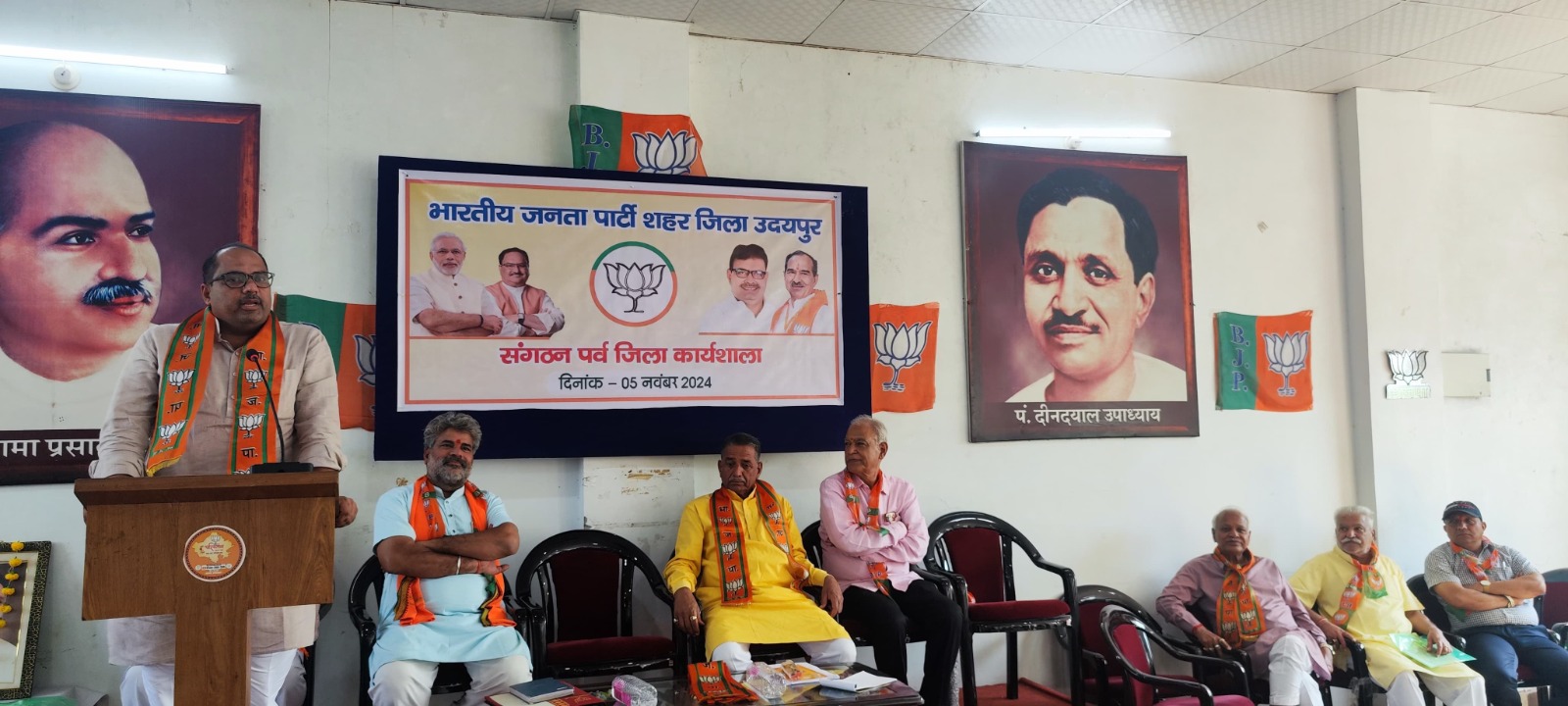 उदयपुर। भारतीय जनता पार्टी का संगठन पर्व संपूर्ण राष्ट्र में प्रारंभ हो चूका है। इसके निमित्त भारतीय जनता पार्टी शहर एवं देहात जिला की संगठन पर्व कार्यशाला का आयोजन किया गया। इस निमित्त प्रात: पटेल सर्कल स्थित पार्टी कार्यालय पर पूर्व प्रदेश महामंत्री , जिला चुनाव अधिकारी श्री वीरमदेव सिंह जैसास के सानिध्य में संगठन पर्व कार्यशाला का आयोजन किया गया जिसमें मुख्य वक्ता प्रदेश के प्रकोष्ठ सयोजक सोमकांत शर्मा थे।
