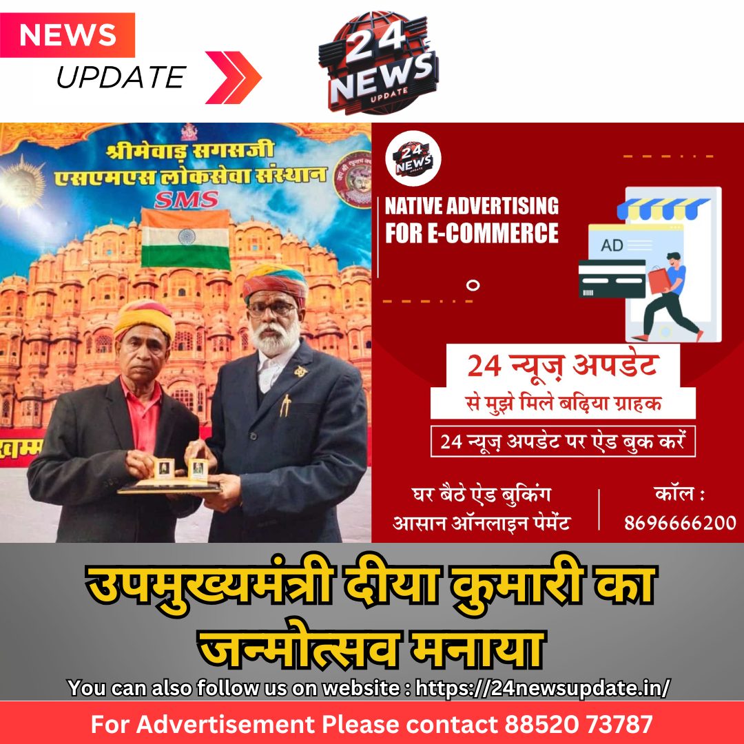 24 न्यूज़ अपडेट उदयपुर. श्री मेंवाड़ सगसजी लोकसेवा संस्थान, फैडरेशन ऑफ एनजीओ राजस्थान, सकल राजपूत महासभा के संयुक्त तत्वाधान में संस्थान परिसर में राजस्थान की उपमुख्यमंत्री दीया कुमारी का 53 तरेपन वा जन्मोत्सव भव्य हर्षोल्लास के साथ धूमधाम से मनाया गया। फैडरेशन के राजस्थान प्रदेश महासचिव कुंवर विजयसिंह कच्छवाहा ने चित्तौड़ा हस्त शिल्प कलाकेंद्र के रिकॉर्ड होल्डर डॉ.चंद्रप्रकाश चित्तौड़ा द्वारा माननीय उपमुख्यमंत्री दीया कुमारी के जीवन पर आधारित 53 तरेपन पृष्ठ की लघु पुस्तिका का विमोचन करके पुस्तिका दीया कुमारी को प्रेषित की गई।