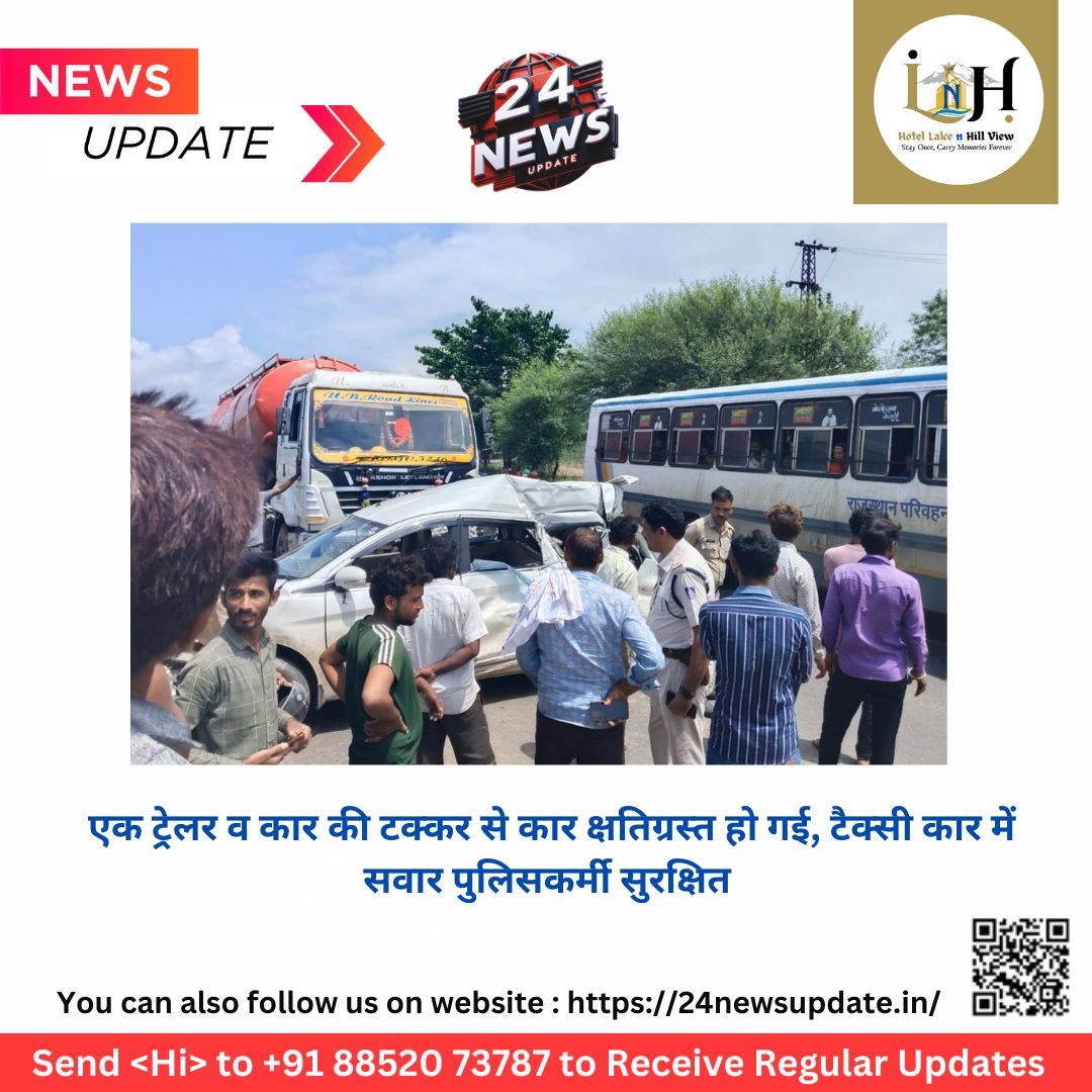 24 न्यूज़ अपडेट निम्बाहेडा। चित्तौड़गढ़ निंबाहेड़ा हाईवे पर रावलिया के पास हुआ हादसा, जोधपुर से नीमच जा रहे थे मध्यप्रदेश पुलिस के अधिकारी और जवान, एक टैक्सी वाहन अर्टिगा कार में सवार थे चालक सहित मध्य प्रदेश पुलिस के 4 अधिकारी और जवान, जांच के लिए जोधपुर गई थी सडक हादसा की सूचना मिलने पर निम्बाहेड़ा सदर थाना पुलिस मौके पर पहुंची। इस घटनाक्रम में कार में सवार पुलिस कर्मी कोई जनहानि नही हुई।
