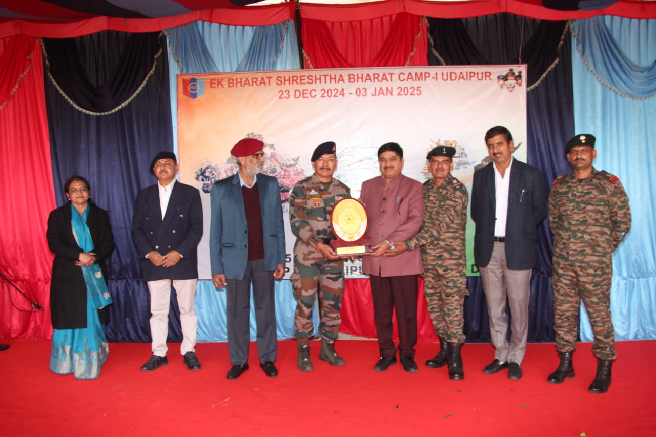 उदयपुर, 1जनवरी 2025: 5 राज गर्ल्स एनसीसी की ओर से आयोजित बारह दिवसीय “एक भारत श्रेष्ठ भारत शिविर “का समापन समारोह नव वर्ष की शुभकामनाओं के साथ हुआ. भूपाल नोबल्स संस्थान के प्रांगण में कर्नल प्रो एस.एस.सारंगदेवोत, कार्यवाहक अध्यक्ष भूपाल नोबल्स संस्थान, डॉ महेंद्र सिंह राठौड़, मंत्री, मोहब्बत सिंह राठौड़, मैनेजिंग डायरेक्टर, डॉ शिल्पा राठौड़, डीन, फैकल्टी ऑफ सोशल साइंस एंड ह्यूमैनिटीज ने शिरकत की। मॉ सरस्वती की वंदना के साथ कार्यक्रम की शुरुआत हुई। एसोसिएट एनसीसी अधिकारी, मेजर डॉ अनीता राठौड़ द्वारा सभी अतिथियों को स्मृति चिह्न भेंट कर स्वागत व अभिनंदन किया गया। साथ ही कैंप रिपोर्ट भी पढ़ी गई जिसमें शिविर में आयोजित की गई गतिविधियों का विवरण दिया गया। उन्होंने बताया कि शिविर में 150 आंध्र प्रदेश व तेलंगाना निदेशालय के कैडेट्स तथा 450 राजस्थान निदेशालय के कैडेट्स ने भाग लिया, शिविर में आयोजित सभी गतिविधियों तथा शैक्षणिक भ्रमण का व्याख्यान किया, शिविर के मुख्य उद्देश्य को पूर्ण करते हुए दोनों ही निदेशालय के कैडेट्स को एक दूसरे की कला संस्कृति वेशभूषा व खानपान आदि को साझा किया। शिविर के समापन समारोह में कैडेट्स द्वारा एक भारत श्रेष्ठ भारत शिविर के उद्देश्य को पूर्ण करते हुए सांस्कृतिक कार्यक्रम का आयोजन किया गया। इस सांस्कृतिक समारोह का मुख्य आकर्षण केंद्र आंध्र प्रदेश व तेलंगाना कैडेट्स द्वारा घूमर नृत्य तथा राजस्थानी कैडेट्स द्वारा आंध्र प्रदेश का नृत्य रहा, जिसने वहां बैठे सभी अतिथि व दर्शकों को अपनी प्रस्तुति से मंत्रमुग्ध कर दिया, महाराणा प्रताप की गौरव गाथा का व्याख्यान करते लोकगीत, अपने प्रदेश को दर्शाता भरतनाट्यम तथा कालबेलिया जैसे नृत्य की भी प्रस्तुति दी गई।