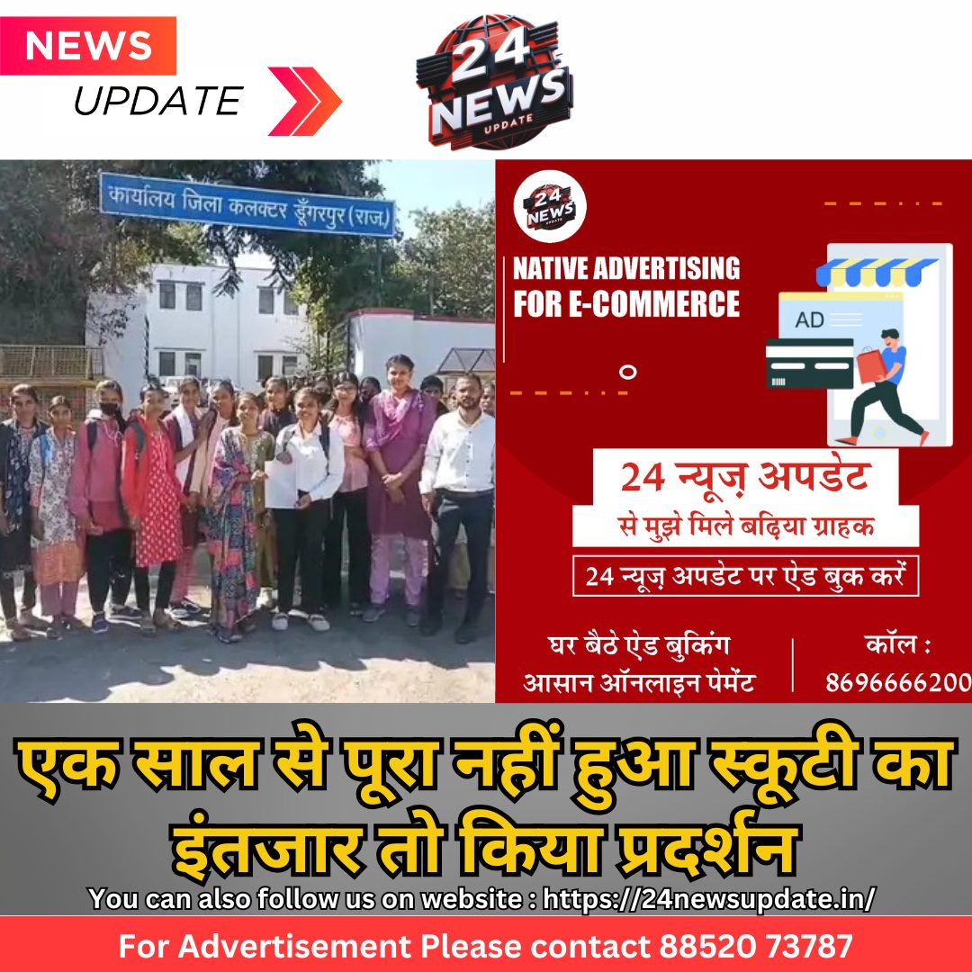 24 न्यूज अपडेट, डूंगरपुर। वीर बाला काली बाई स्कूटी योजना से वंचित छात्राओं ने आज कलेक्ट्रेट पर जोरदार प्रदर्शन किया व वीर बाला काली बाई स्कूटी योजना में वंचित रही छात्राओं ने कलेक्ट्रेट पर नारेबाजी करते हुए प्रदर्शन किया। वीर बाला काली बाई स्कूटी योजना में अब तक इनको स्कूटी नहीं मिल पाई है। साल 2022-23 में इनका चयन किया गया था। इनकी संख्या 1168 है। केवल 168 को ही स्कूटी मिली है। एक हजार छात्राए अब तक स्कूटी का इंतजार कर रही हैं। सरकार की ओर से 2023-24 बैच की छात्राओं को स्कूटी का वितरण ही किया गया। जिनको अब तक स्कूटी नहीं मिली उनके बारे में स्पष्ट जवाब नहीं दिया जा रहा हैं पात्र छात्राओं को प्रदर्शन करने वाली छात्राओं ने कलेक्टर को ज्ञापन दिया व कहा कि जल्द से जल्द स्कूटी वितरण की जाए। छात्राओं का कहना है कि वे पहले भी कलेक्टर, विधायक, सांसद, शिक्षा अधिकारी और कॉलेज प्रिंसिपल को कई बार ज्ञापन दे चुकी हैं, लेकिन सुनवाई नहीं हो रही है।