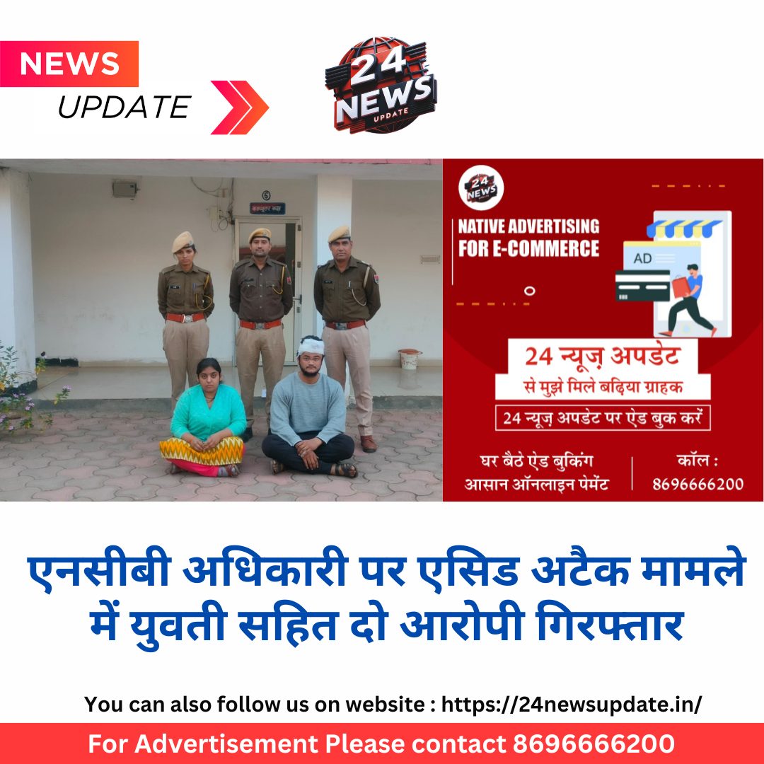 24 न्यूज अपडेट प्र्रतापगढ़ । जिला मुख्यालय पर गुरुवार को लिफ्ट के बहाने नारकोटिक्स विभाग के अधिकारी के ऊपर एसिड अटैक कर जान से मारने की नीयत के मामले में कोतवाली पुलिस ने एक युवती व एक युवक को डिटेन कर गिरफ्तार किया। कोतवाली थाना अधिकारी दीपक कुमार बंजारा ने बताया कि 29 नवंबर को महेन्द्रपाल सिंह पिता गोविंद सिंह सिसोदिया उम्र 52 वर्ष निवासी सांतनु विहार पुलिस थाना वायडी नगर मंदसौर मप. ने थाने में उपस्थित होकर रिपोर्ट दर्ज करवाते हुए बताया कि 28 नवंबर को दोपहर के करीब तीन बजे सूचना मिली कि मेरे पुत्र हर्षवर्धन को प्रतापगढ़ की खुशी राव व उसके साथी प्रियांशु राठौर निवासी प्रतापगढ़ द्वारा जान से मारने की नियत से एसिड से हमला कर उसकी कार का एक्सीडेंट कर दिया। इस पर थानाधिकारी द्वारा पुलिस का टीम का गठन कर वांछित आरोपी खुशी राव व उसके साथ प्रियांशु राठौर को डिटेन कर पुछताछ की जिसमें उन्होनें बताया कि 28 नवंबर को खुशी राव व उसके साथी प्रियांशु राठौर ने मिलकर हर्शवर्धनसिंह पर एसिड अटैक कर जान से मारने की योजना बनाकर दोनों प्रतापगढ़ से मोटरसाईकिल पर रवाना होकर बगवास से आगे चितौडगढ़ रोड पहुंचे। वहां पर खुशी को प्रियांशु ने छोड़ दिया और उसको बताया कि तू हर्षवर्धन के साथ उसकी कार में पीछे बैठ जाना और उसे बातों में उलझाकर ऐसिड से हमला कर देना। मैं तेरे सपोर्ट के लिये पीछे पीछे आता रहूंगा। खुशी हर्शवर्धन सिंह की कार में बैठ गई और आगे चलने को कहा हर्शवर्धन सिंह कार चला रहा था खुशी कार में पीछे एक बैग लेकर बैठी थी और अपने साथी प्रियांशु राव को मैसेज करते हुये अपडेट दे रही थी। इसकी भनक हर्षवर्धन सिंह को लगी तो उसने गाड़ी वापस प्रतापगढ़ की तरफ घुमाने लगा। इतने में खुशी राव ने अपने बैग से एसिड की बोतल निकालकर हर्द्यावर्धन पर उड़ेल दी तथा अपने साथ लाई लकड़ी से हर्षवर्धन के सीने पर हमला किया। हमले से घायल हर्षवर्धन द्वारा गाड़ी काअचानक ब्रेक लगाने से पीछे आ रहा प्रियांशु राव मोटरसाईकिल सहित कार में टकरा गया। टक्कर लगने से कार का पीछे का कांच टूट गया और प्रियांशु के सिर में चोट लगी। घटना में प्रयुक्त एसिड आरोपी प्रियांशु द्वारा खरीद कर ले जाना स्वीकार किया गया। दोनों द्वारा घटना कारित करना स्वीकार किया । एसपी के आदेशानुसार बांसवाडा से मोबाइल फोरेंसिक युनिट बुलवाई ओर कार से साक्ष्यों का संकलन किया गया। गाडी से एसिड की बोतल जिसमें किलें लगी हुई को जब्त किया जाकर आरोपी खुशी पुत्री पवन राय निवासी एरियापति प्रतापगढ़ और प्रियांशु पुत्र दिनेश चंद्र तेलगार निवासी बिहार प्रतापगढ़ को गिरफ्तार कर पूछताछ में जुट गई ।