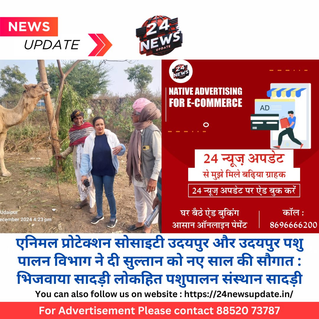 24 न्यूज अपडेट उदयपुर. एनिमल प्रोटेक्शन सोसाइटी उदयपुर ने सुल्तान को ६ दिसंबर २०२४ को निराश्रित अवस्था में रेस्क्यू करके उसका संज्ञान लिया। साथ ही ऊंट राज्य पशु घोषित किया हुआ है तो उसकी सूचना राज्य जीव जंतु कल्याण बोर्ड जयपुर को दी। जहाँ से उदयपुर के पशुपालन विभाग को सुल्तान के स्वास्थय की जांच करने को कहा गया। सुल्तान की स्वास्थ्य की जाँच डॉक्टर दत्तात्रेय द्वारा की गयी और उसको दवाईयां दी गयी। सुल्तान के खाने पीने का व्यवस्था एनिमल प्रोटेक्शन सोसाइटी ने की और उसका ध्यान जगदीश जी रेबारी रखते थे। पर सुल्तान फिर भी निराश्रित ही था क्यूकी उसे शेल्टर की जरुरत थी। संस्था की संस्थापिका डॉ माला मट्ठा के अथक प्रयासों के बाद पशुपालन विभाग के जॉइंट डायरेक्टर डॉ शरद अरोड़ा ने इस काम को गति दी और सादड़ी लोकहित पशपालन संस्था में सुल्तान को भिजवाने की बात करी। आज सादड़ी से हरी लाल रेबारी जी आये और सुल्तान उन्हें सुपुर्द कर दिया गया। पशुपालन विभाग से करण सिंह ,राहुल मीणा मौजूद थे , संस्था से डॉ माला मट्ठा और जगदीश जी रेबारी मौजूद थे। हम सुल्तान के उज्जवल भविष्य और अच्छे स्वास्थ्य की कामना करते है।