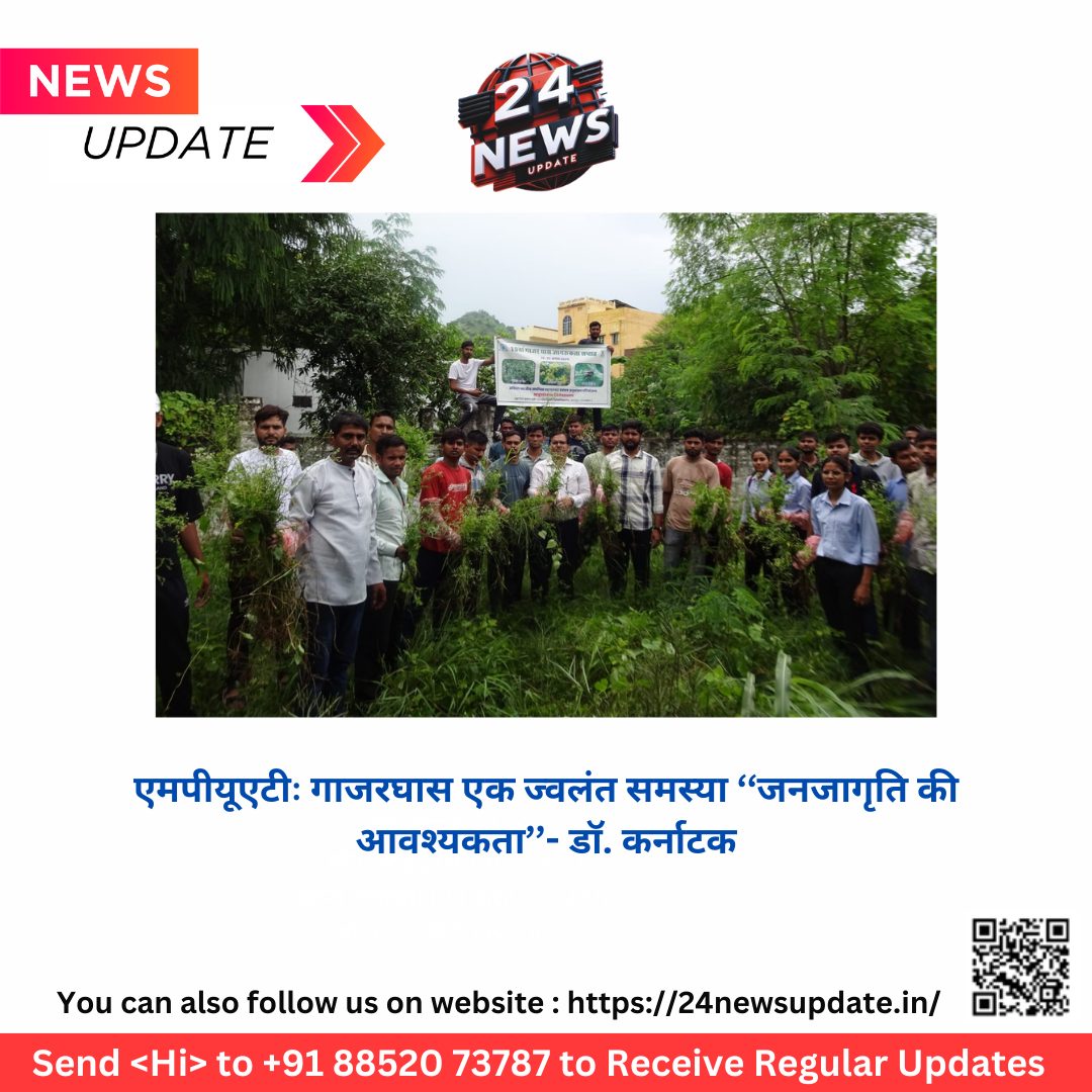 24 न्यज अपडेट. उदयपुरमहाराणा प्रताप कृषि एवं प्रौद्योगिकी विश्वविद्यालय, उदयपुर के अनुसंधान निदेशालय की अखिल भारतीय समन्वित खरपतवार नियंत्रण अनुसंधान परियोजना के तहत् गाजरघास जागरूकता सप्ताह का आयोजन 16 से 23 अगस्त, 2024 तक राजस्थान कृषि महाविद्यालय एवं विश्वविद्यालय के अनुसंधान केन्द्रों, अन्य महाविद्यालयों एवं कृषि विज्ञान केन्द्रों पर वृहद रूप से मनाया गया।कार्यक्रम के समापन समारोह दिनांक 23 अगस्त, 2024 को राजस्थान कृषि महाविद्यालय में आयोजित गाजरघास जागरूकता कार्यक्रम में मुख्य अतिथि डॉ. अजीत कुमार कर्नाटक, माननीय कुलपति, महाराणा प्रताप कृषि एवं प्रौद्योगिकी विश्वविद्यालय, उदयपुर ने अपने उद्बोधन में बताया कि गाजर घास एक अत्यंत ही दुष्प्रभावी पादप है इसका मानव, पशु एवं पादप जैवविविधता पर दुष्प्रभाव वर्णन करते हुए चिन्ता व्यक्त की। उन्होंने अपने उद्बोधन में कहा कि देश में इसके तेजी से फैलना भी एक ज्वलन्त समस्या है। अपने उद्बोधन में उन्होंने कृषि विद्यार्थियों एवं संकाय सदस्यों की जिम्मेदारी को निभाते हुए जनमानस में इसके नियंत्रण एवं उनमुलन की जनजाग्रति के उŸार दायित्व को याद दिलाया और बताया कि इसके प्रभावी नियंत्रण के लिए जनजागृति की आवश्यकता है। गाजर घास हमारे राष्ट्र का पौधा नही है इसके बीज देश के खाद्यान्न आपूर्ति के समय आयातित अनाज के साथ हुआ था। यह सर्वप्रथम देश में वर्ष 1955 में देखा गया एवं वर्तमान में एक विकराल समस्या का रूप धारण कर देश के 10 प्रतिशत से भी अधिक भौगोलिक क्षेत्रफल में फैल गया। उन्होंने कहा कि गाजर घास पर्यावरण के सभी घटकों को हानि पहुंचाता है। अतः इसके नियंत्रण के लिये जनसाधारण को जागरूक करना एवं इसके प्रभावी नियंत्रण के लिए योजनागत निरन्तर प्रयास अत्यंत आवश्यक है। उन्होंने जैविक विधि से इसके प्रभावी नियंत्रण की तकनीक एवं मेक्सीकन बीटल (जाइगोग्रामा बाइकोलाराटा) द्वारा इसके नियंत्रण को विस्तृत से बताया।कार्यक्रम के विशिष्ठ अतिथि डॉ. आर. बी. दूबे, अधिष्ठाता, राजस्थान कृषि महाविद्यालय, उदयपुर ने कहा कि गाजर घास का मुख्य प्रसार बीजों के माध्यम से होता है अतः बीज बनने से पहले ही इसे नष्ट कर देना चाहिए। उन्होंने बताया की गाजर घास से कई प्रकार के रोग होते है जिसमे त्वचा एवं श्वसन की एलर्जी प्रमुख है। गाजर घास की वृद्धि बहुत तीव्र गति से होती है जिसके कारण अन्य प्रकार के पौधे वनस्पति उत्पन्न नहीं हो पाते, जिससे जैवविविधता को बहुत बड़ी हानि होती है।कार्यक्रम में अखिल भारतीय समन्वित खरपतवार नियंत्रण अनुसंधान परियोजना प्रभारी के एवं निदेशक अनुसंधान, डॉ अरविंद वर्मा ने गाजर घास के हानिकारक प्रभावों का विस्तृत वर्णन किया एवं गाजर घास के नि